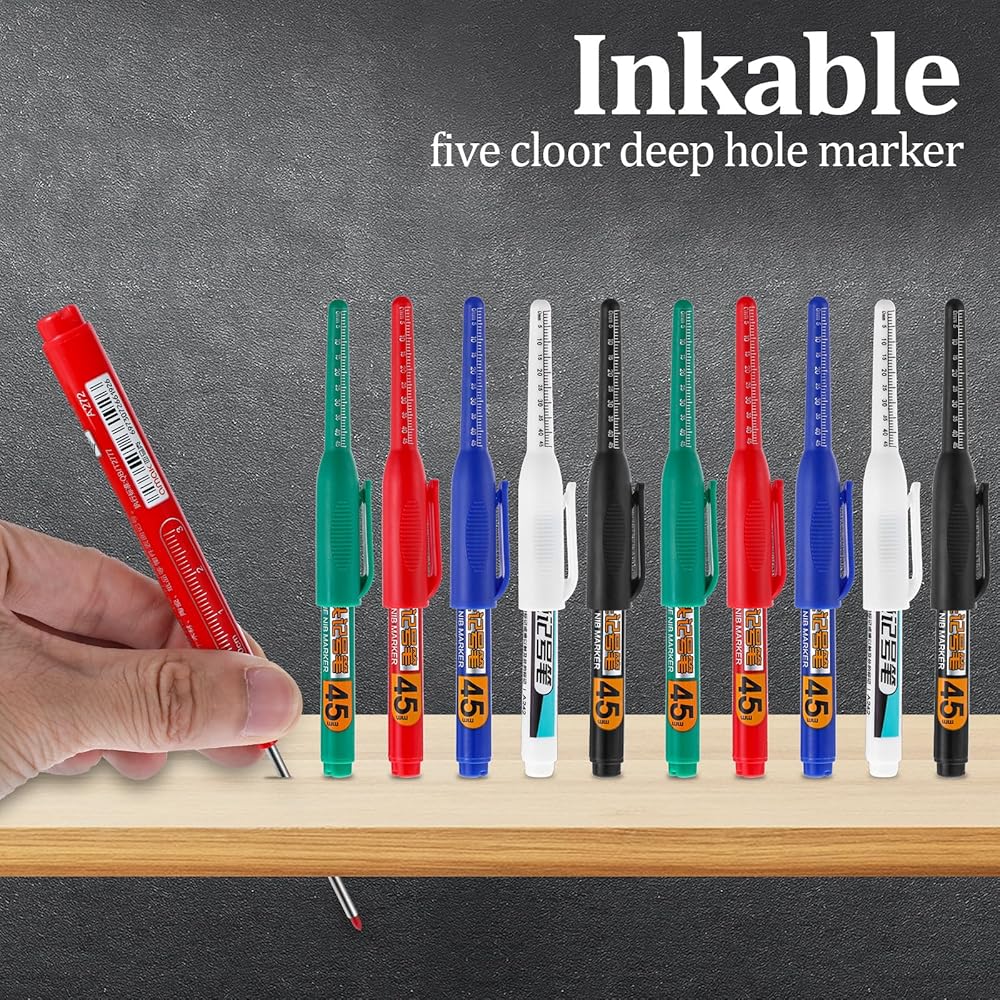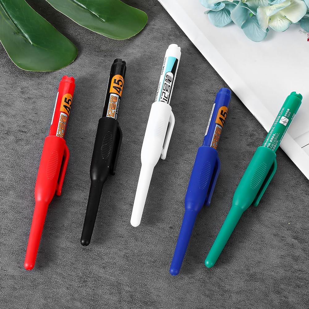 • Versatile Marking: Our long-nib marker set includes 5 vibrant colors, including black, white, blue, red, and green, designed for precise marking on various surfaces, such as wood, metal, tile, and concrete. Perfect for carpentry, construction, and DIY projects.