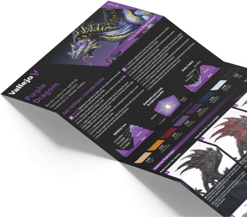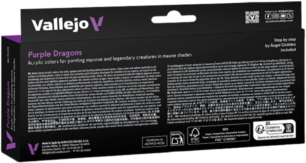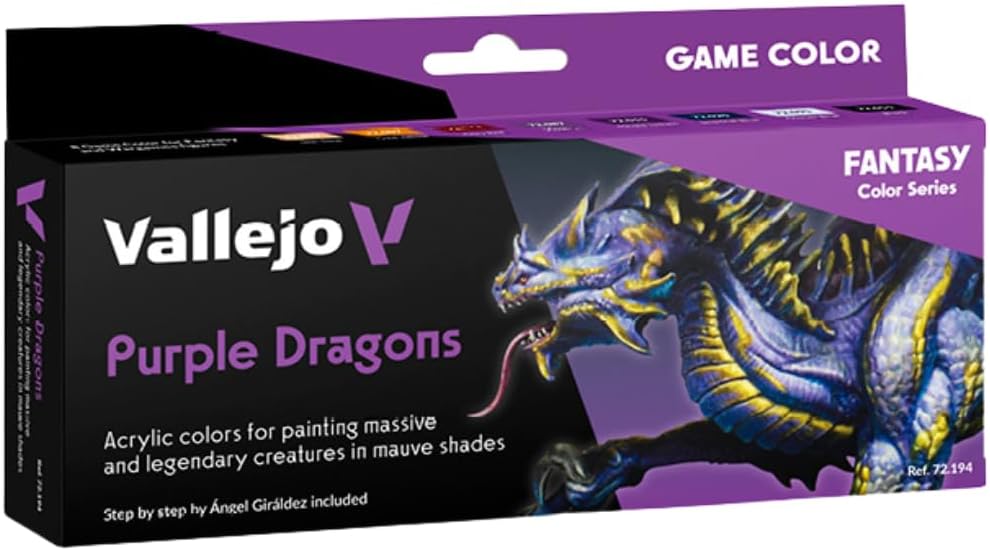 Purple Dragons Paint Set This set contains 8 Game Color references for painting dragons in shades of purple and features detailed step-by-step instructions from Ángel Giraldez. Contents: 1 x 17 ml each 72007, 72099, 72011, 72095, 72020, 72087, 72015, 72051.