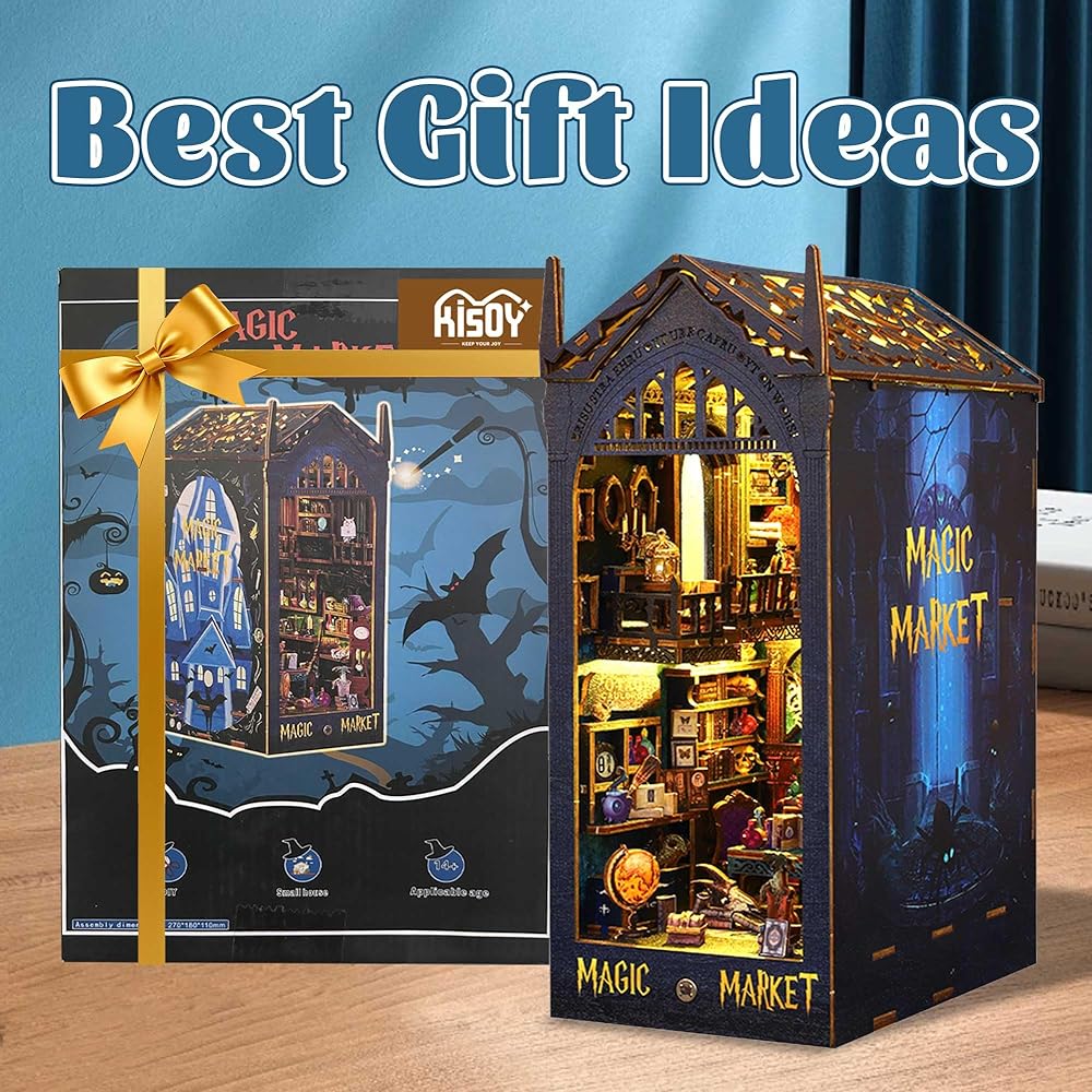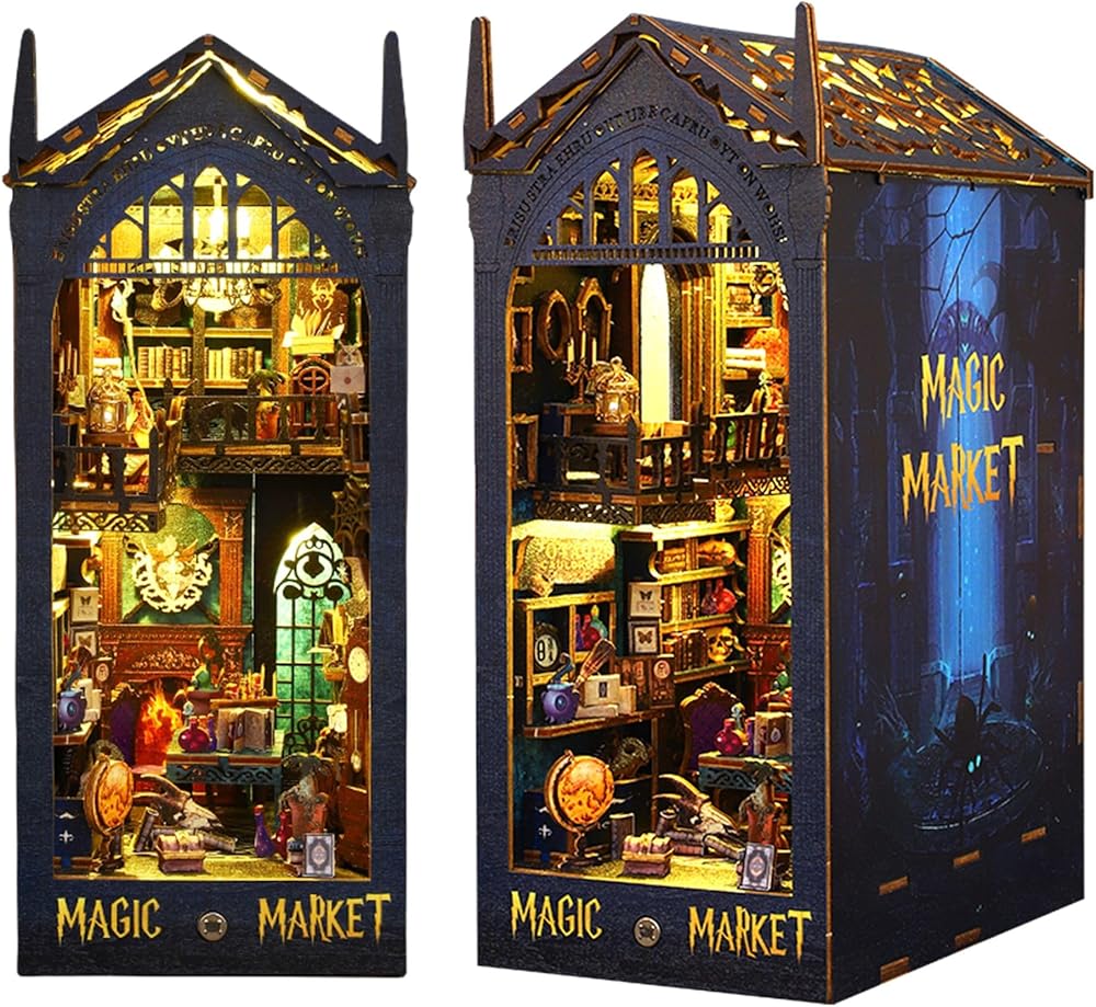 【Enchanting Bookshelf Decor】Slide the finished book nook into your shelf and watch your bookcase come alive with a captivating scene. Detailed miniatures and soft LED lighting make it both a functional bookend and a charming decor piece, sure to spark conversation and imagination.