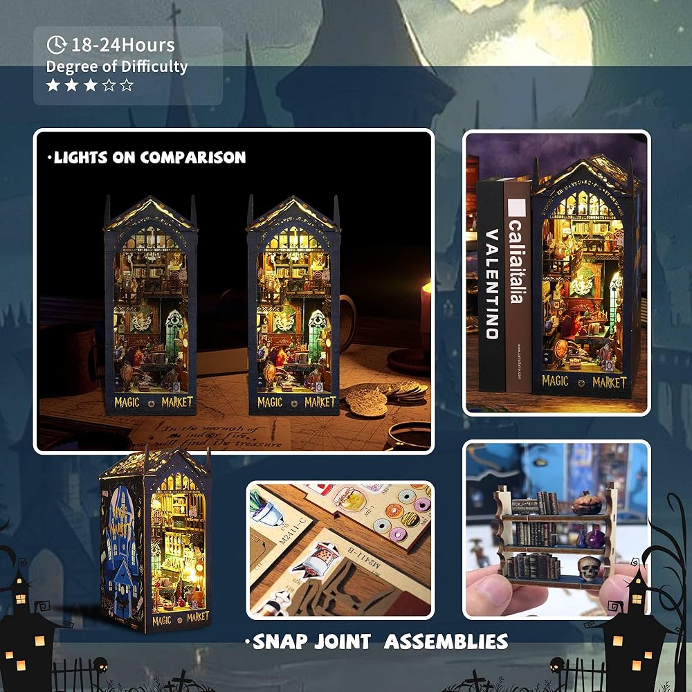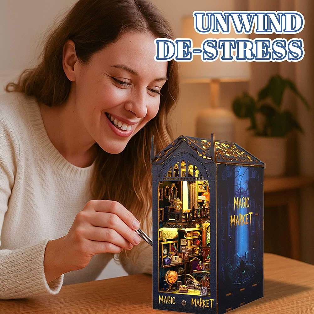 【Fun & Relaxing DIY Journey】Escape the daily grind with this enjoyable DIY book nook kit. Building your own miniature scene inside a bookshelf insert is a relaxing hobby that melts stress away, rewarding you with a magical little world you created.