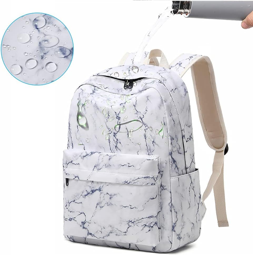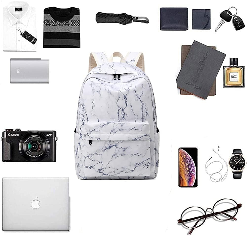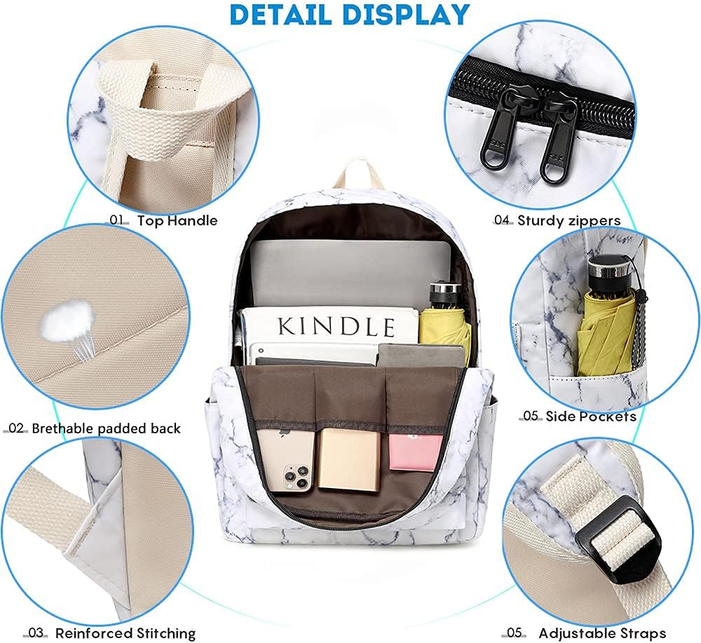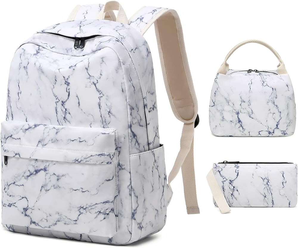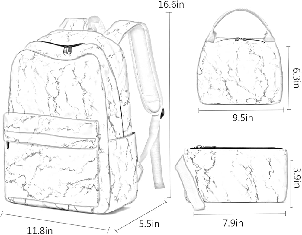 Sunborls Backpack for Teen Girls Lightweight High-Capacity Student Bookbag Women Backpack With Lunch Bag Pencil Bags Student Bookbags 3pcs(Marble White)