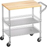 Safe & 650Lbs Capacity & Anti-Rust Kitchen Cart: WDT This commercial grade rolling utility cart is constructed from high quality industrial strength metal, 21mm thicker wooden tabletop and equipped with 1 inch diameter poles. It can hold up to 650lbs on wheels. NSF-certified rolling cart with wheels are suitable for dry and heated storage environments, and can safely store various foods or tools. The metal surface of this heavy duty carts is rust-proofed make it easy to clean.