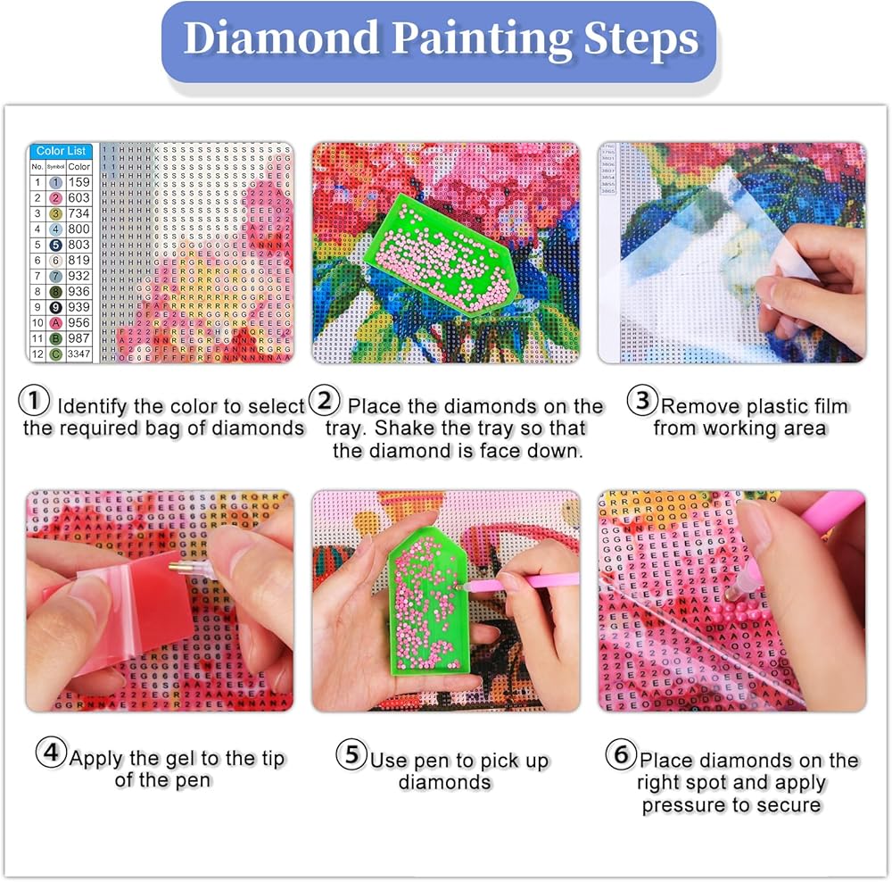 Easy to Read: Our diamond paintings feature clear letter symbols and color-coded patterns for easy matching. Each design uses simple graphics and numbered codes that correspond to the drill colors. It's easy to finish the diamond art by number, even for beginners. The bonding layer on the canvas is very firm, making the diamonds not easy to fall off