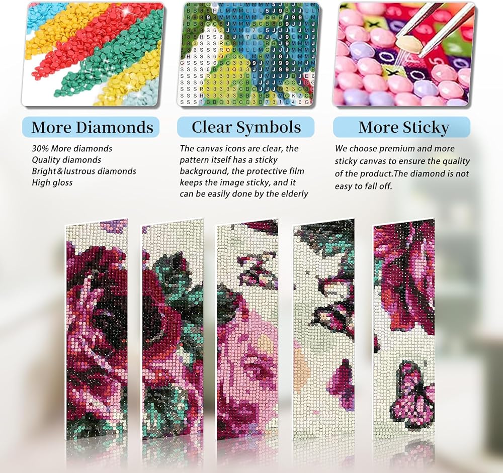 HD Diamond Canvas: The sparkling 5D diamonds create vibrant, it's a mix between paint by numbers and Cross Stitch dimensional artwork that brings lasting satisfaction. Whether you're a beginner or experienced crafter, these diamond art kits for adults offer endless enjoyment time and beautiful finished products, which are worth cherishing