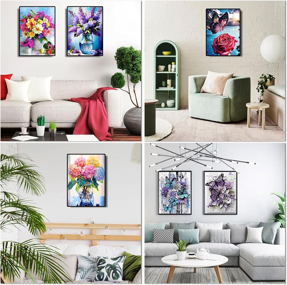 Premium Flower Diamond Art: The design of our diamond art kits are themed around flowers and butterflies. Resin diamonds feature vivid and vibrant colors, dazzling and sparkling in the light, you will enjoy the fun of production, creating an artistic effect that enhances the overall appearance of the painting