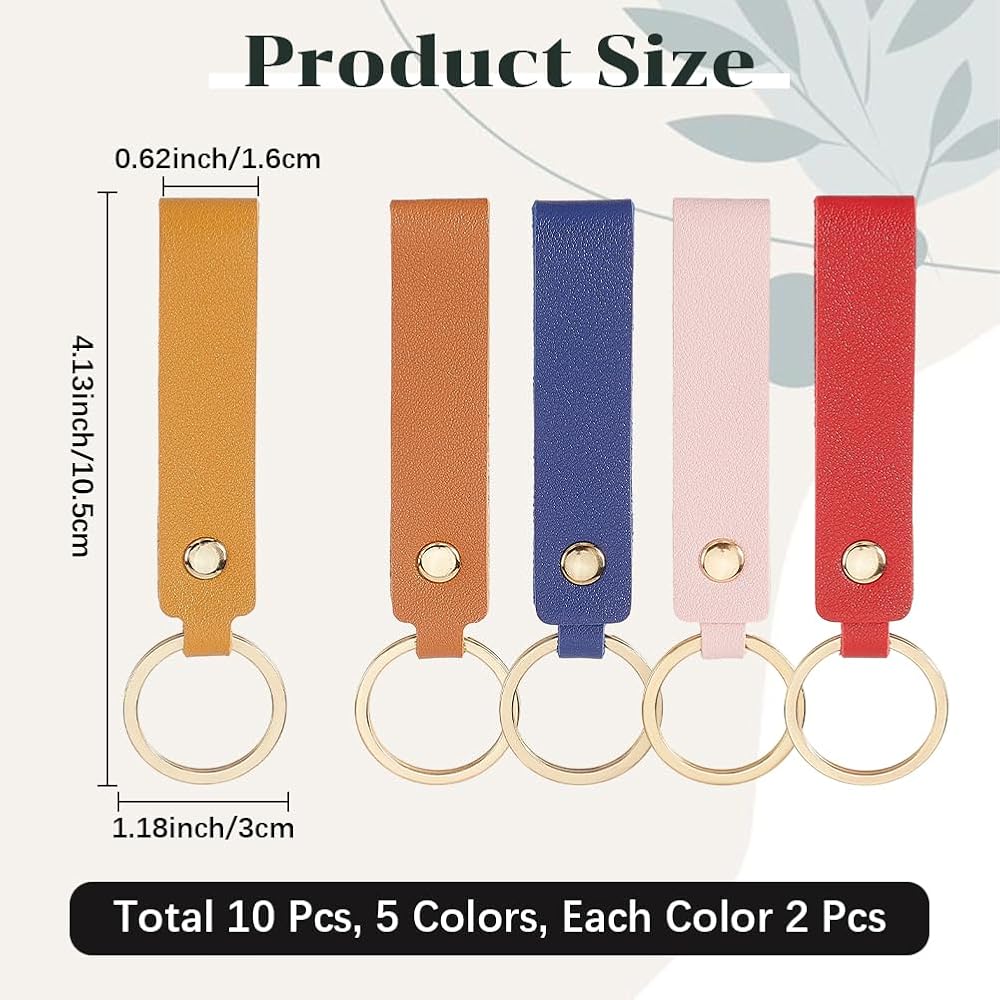 5 COLORS 10 PCS: Include 5 colors key fobs(red, orange, brown, blue and pink), and 2pcs/color, total 10 pcs, more colors can take more fun for your DIY crafts, each leather keychain kit is portable, the leather tag is about 4.13 inch(10.5cm) long and 0.63 inch(16mm) wide, and the iron ring is about 1.18 inch(3cm) in diameter, is perfect for craft making
