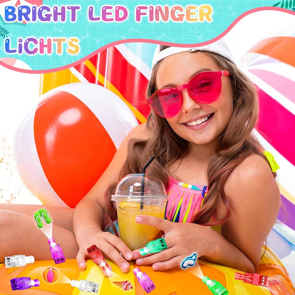 32PCS Summer Pool Beach Party Favors LED Finger Lights Glow in the Dark Toys Gifts Bulk for Kids Birthday Stocking Goodie Bag Stuffers Party Decorations Back to School Supplies Classroom Prizes
