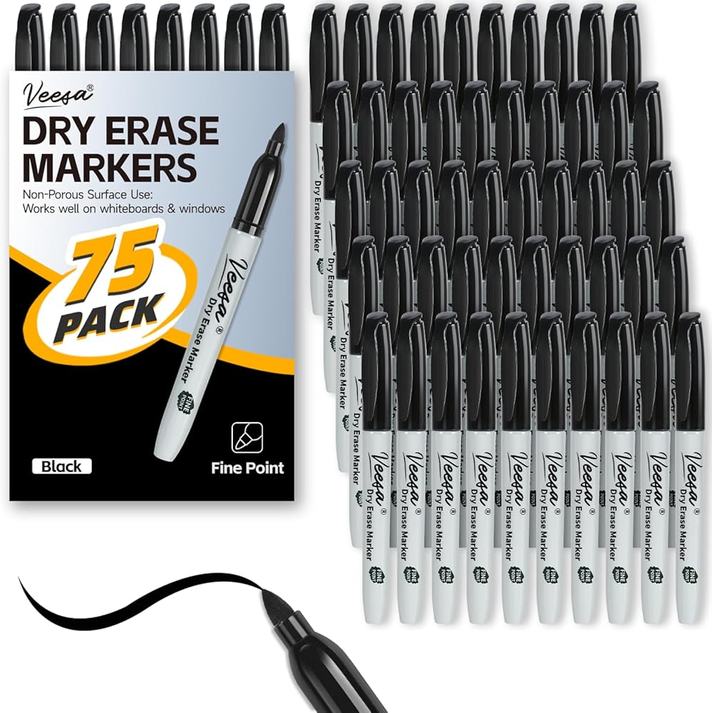 Includes: 75 black Dry Erase Markers for classrooms, offices and homes. Please contact us with any products issue.(NOTE: Be sure to cover the marker cap after use, or the alcohol base ink will volatilize quickly.)