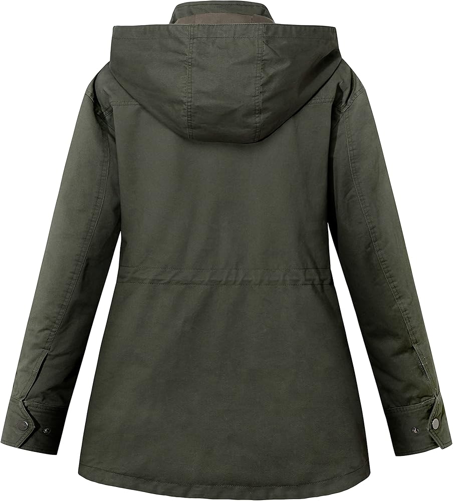 OUTSTANDING DURIBILITY -- Made of high density twill pure cotton out fabric and ripstop lining, this women plus size military jacket wearing comfortable in the outside. Heavy duty full length zipper keep you wearing it lastingly.