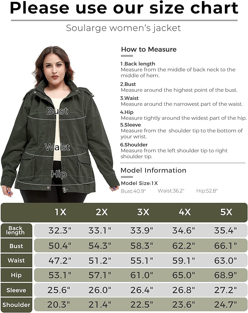 TAILORED TO PLUS SIZE -- For giving thick and curvy ladies a flatterring look, the plus size hooded jacket is based on the body shape and size of a large number of people in the U.S. to ensure that we get a standard measurement. No any bulky looked when you pair it with your pants or jeans going out.