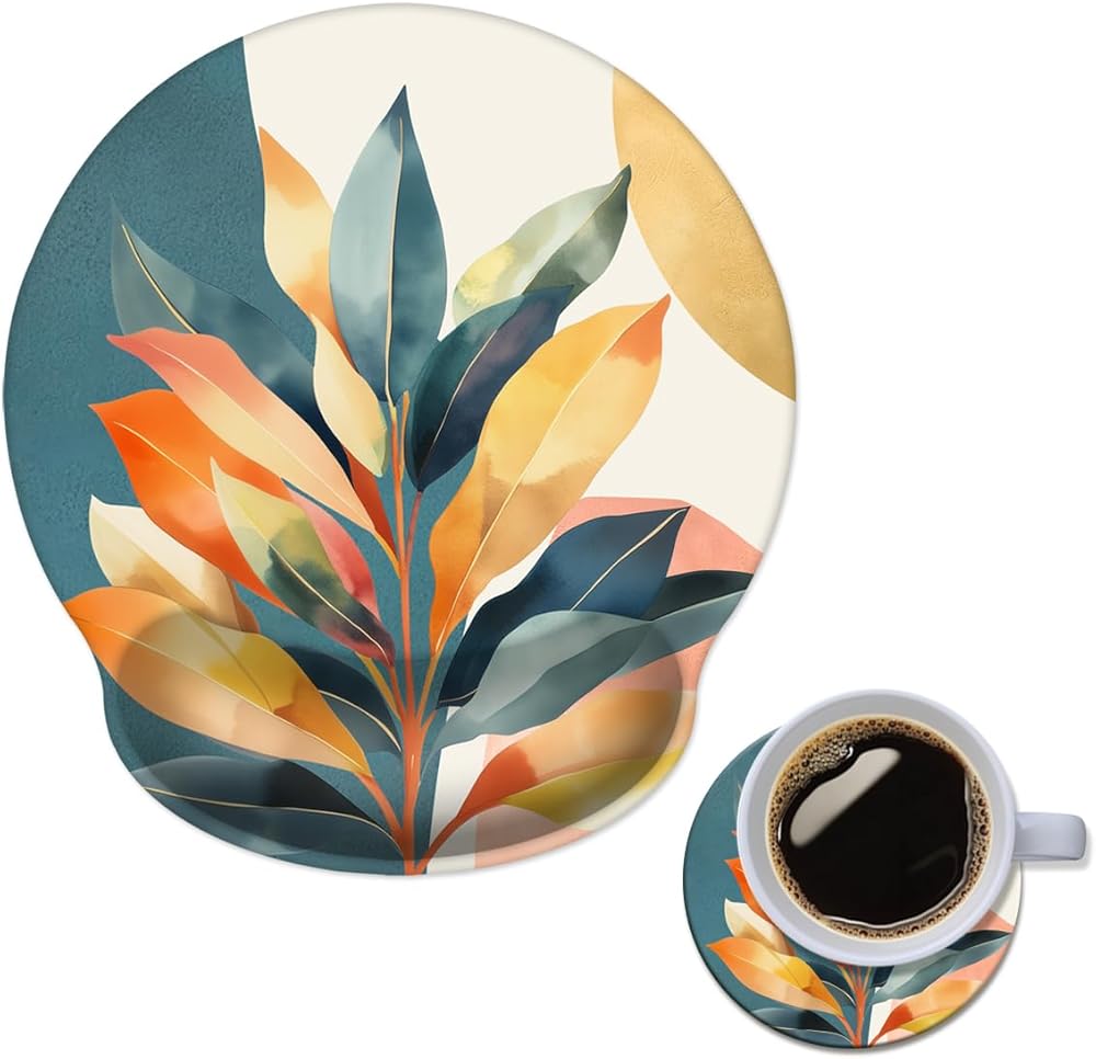 Functional Coaster and Coordinated Aesthetics: Keep drinks secure and desks pristine with our 3.9" non-slip coaster, designed to catch every coffee spill and condensation ring. Paired with the cute mouse pad with wrist rest, they share identical artistic designs—modern marble, kawaii florals, or retro pixels—to transform your workspace into a clutter-free stylish sanctuary.
