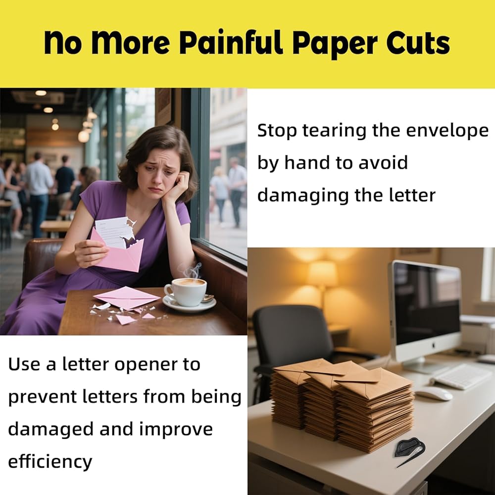 • Multi-Purpose Design: Combines a paper cutter slider, letter opener, and envelope opener in one compact tool. Perfect for crafting, office tasks. Note: Keep the product out of reach of children and do not allow them to use it independently