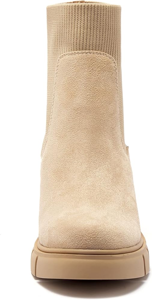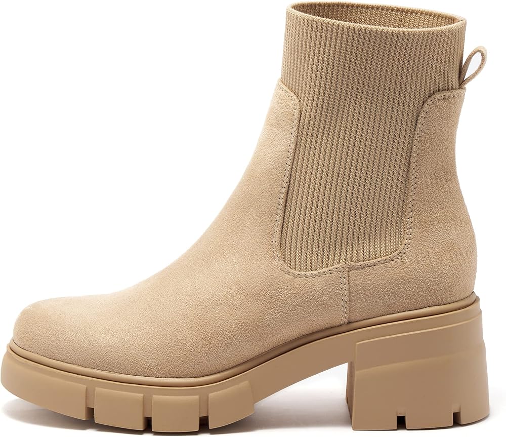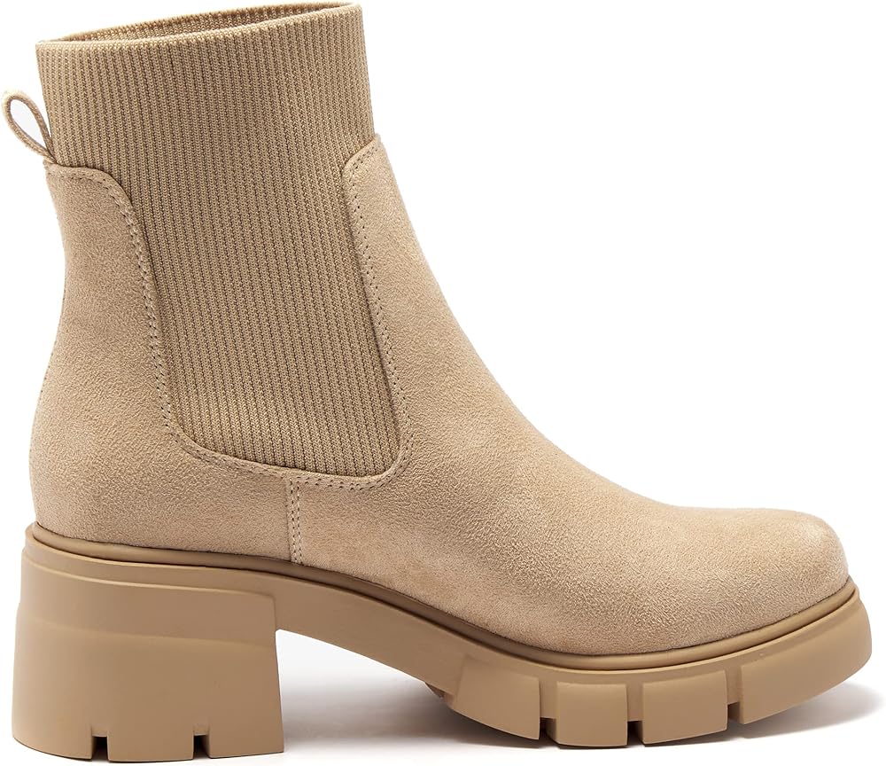 Elastic Gore Chelsea Boots: Platform chunky block heel lugged sole ankle boots for women, casual elastic gore chelsea boots easily take on and off.