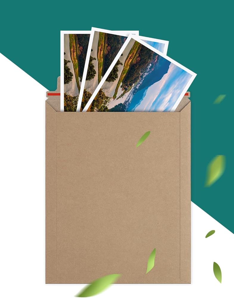 Set of 25: Package includes 25 pack photo mailers. With the stay flat feature, this cardboard envelope is the perfect choice for CDs, photos, books, paper, documents, certificates, art prints, etc