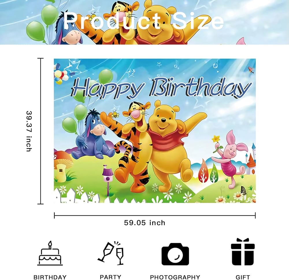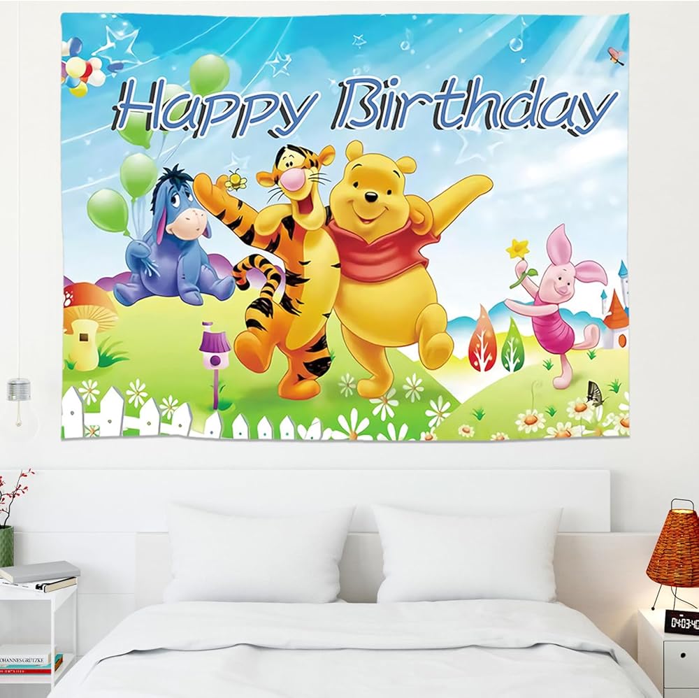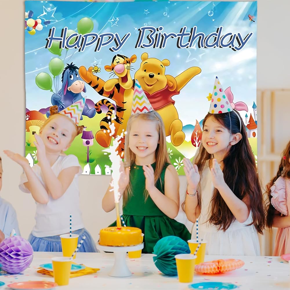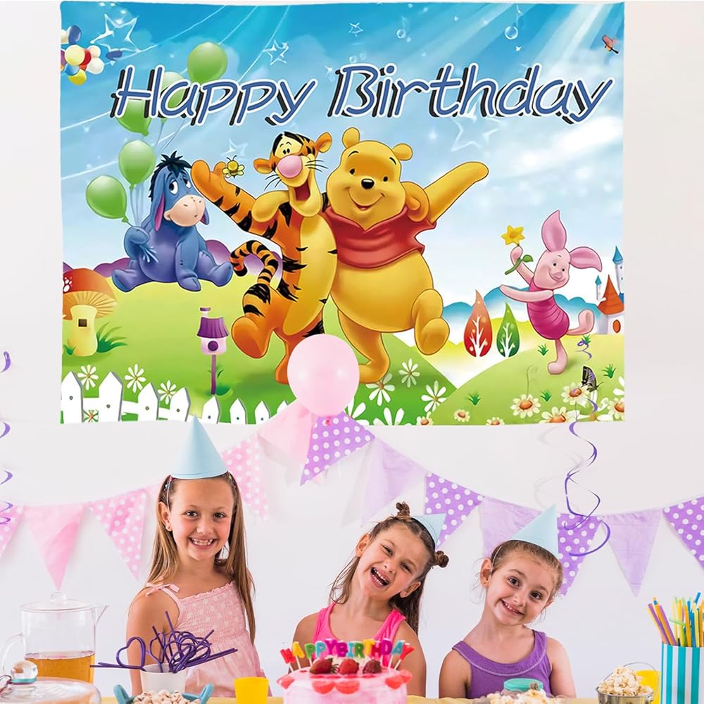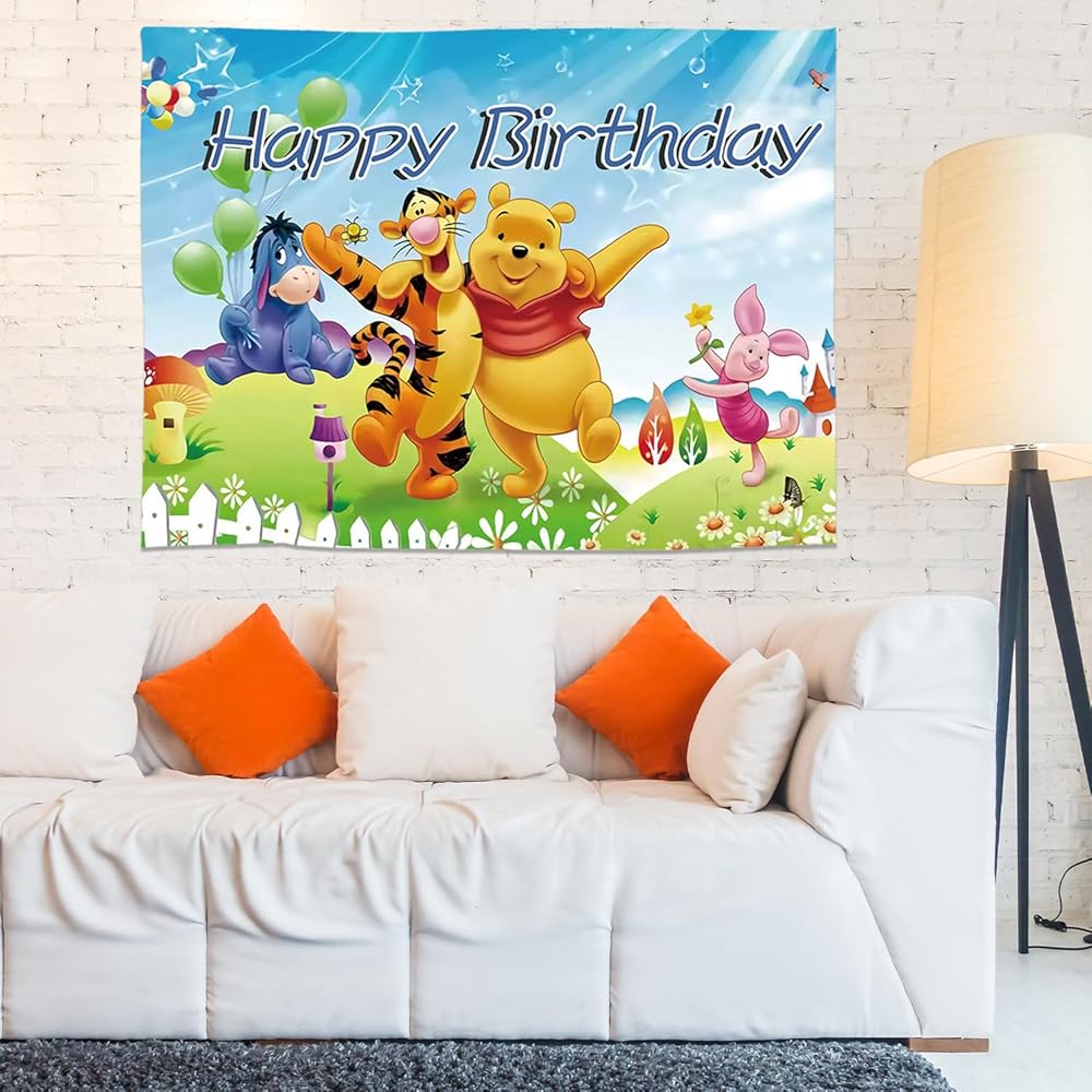 Cartoon Pooh Birthday Party Supplies Backdrop, Pooh Bear Banner Party Decorations Living Room Tapestry for Bedroom Photography Background (TA-WEINI 2403)