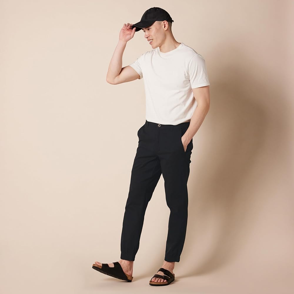 EVERYDAY CASUAL STYLING: These casual, woven jogger pants combine chino detailing with easy pull-on styling. Tapered legs go into an elasticated cuff for a comfortable, casual everyday look.
