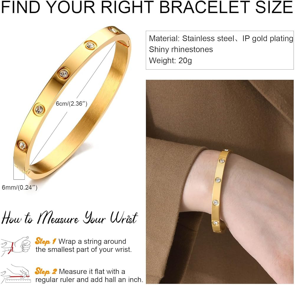 Love Bracelet Size: The circumference of this bangle is 18 cm (7.08 inches), the width is 6 mm, and the inner diameter is approximately 6 cm x 5 cm (2.36 inches X 1.97 inches), suitable for most wrist sizes from 5.7" to 6.7".