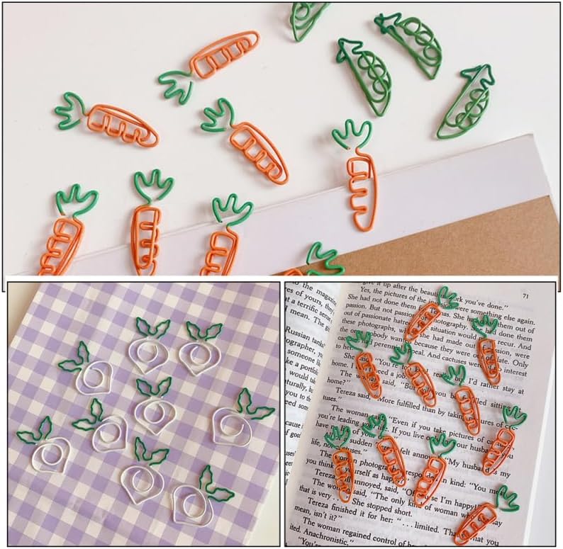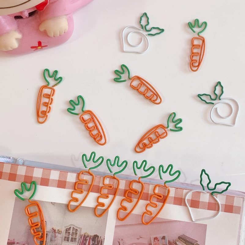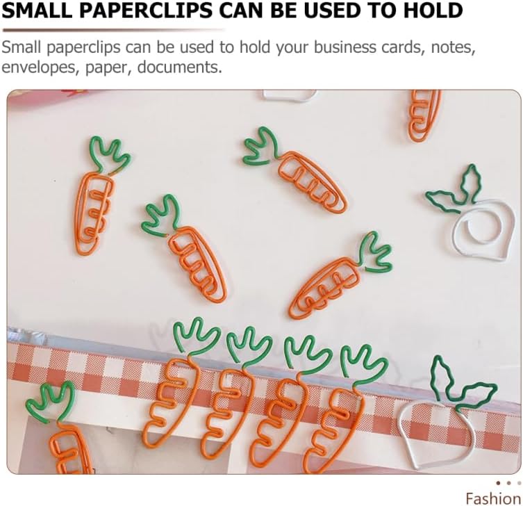 work binder Decorative paper clips are with special shaped, easy to install and remove, very delicate to bring your item a new look.cute paperclip Small size, multiple uses, they can be used for paper, stationery, fasteners, envelops, and more.carrot paper clip These paper clips are manufactured with premium materials, durable and can be used for a long time