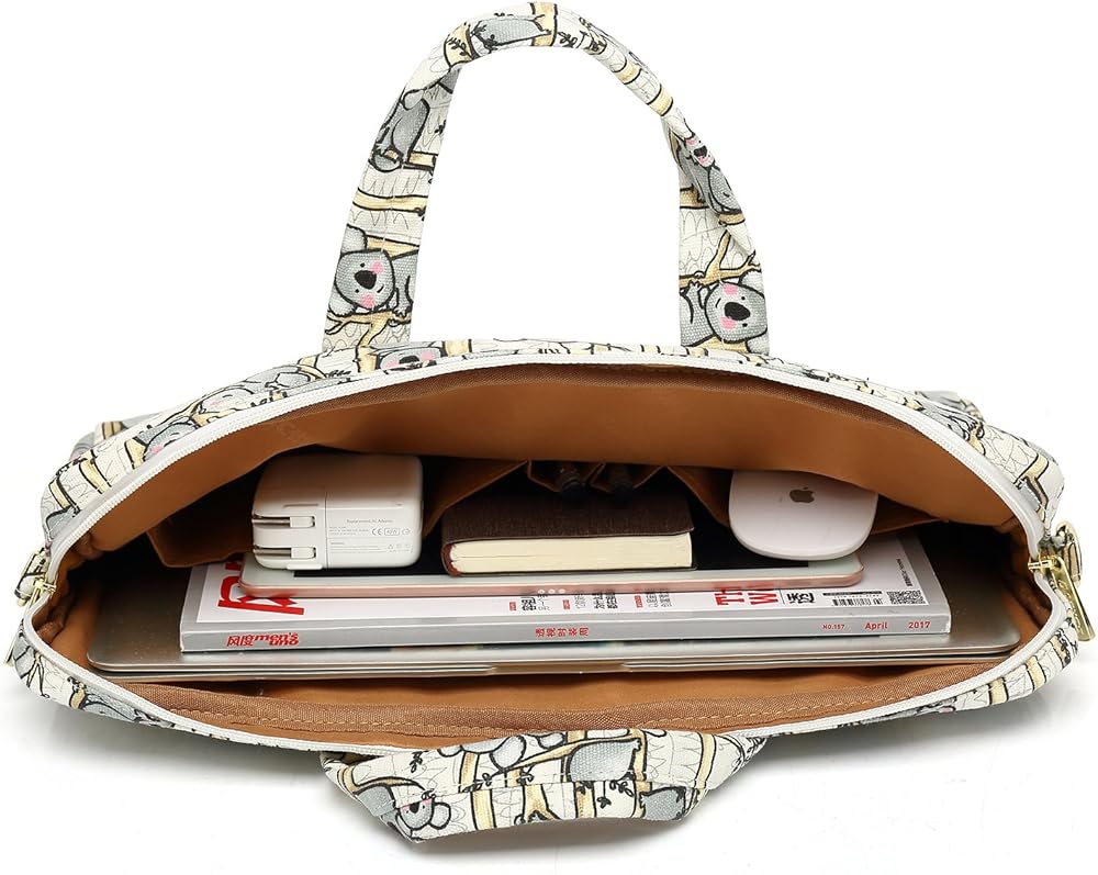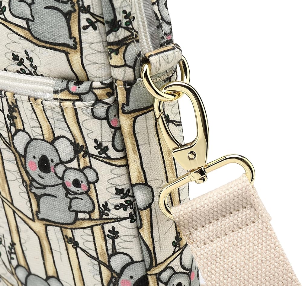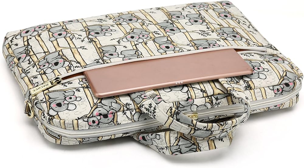 DACHEE Grey Koala Pattern 15 Inch Canvas Waterproof Laptop Shoulder Messenger Bag For 14 Inch To 15.6 Inch Laptop 15 laptop Case