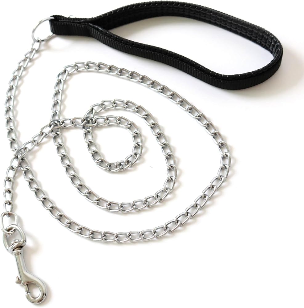 - Dog leash: Comfortable PU material handle, sturdy metal button chain. - Leash for large dogs that pull:Provide thicker diameter metal chains, safe and reliable, without fear of large dog impact. - Dog leashes for large dogs heavy duty: Perfect craftsmanship snap easy and firmly to attach to the lifting harness ring - heavy duty dog leash: The dog chain lead is strong enough to training you dog - Specifications: Material: PU leather handle+iron chain Type: Basic Leashes Length: 4ft (1.2M) / 6ft (1.8M) Leash Season: All Seasons !!!! WARM NOTE:This leash is not suitable for small dogs, so please read carefully about its weight and length before purchase! Thank you!
