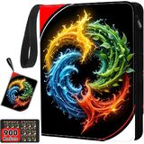 9-Pockets Card Binder - Can hold 1008 Cards with 56 Removable Sleeves, Color-Powered 3D Artwork 3-Ring Zipper Sports Book Compatible with TCG, MTG and Game Cards, Trading Card Collector Album