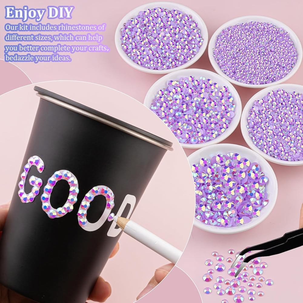 WIDE APPLICATION -- These sparkling iridescent resin rhinestones are perfect for creating dazzling looks. Use them for bedazzling crafts like shoes, tumblers, mugs, bottles, phonecases, bags, glasses, hats, masks, clothing, clothes or nail art and more