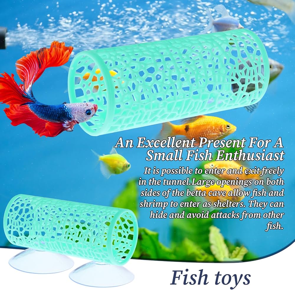 【betta fish tank accessories】Measuring 10cm in length and 4.2cm in diameter, our betta tunnel is perfect for small fish and shrimp to swim through and hide. The tunnel's hollow design provides a sense of security, while the included suction cups allow for easy installation.