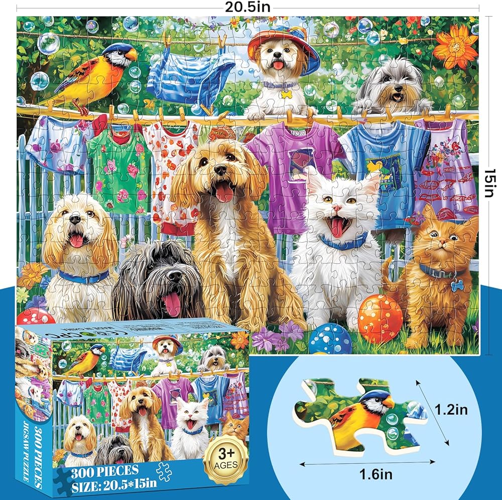 300 Piece Puzzles for Adults, Cute Dog Jigsaw Puzzle for Adults Children Elderly, Large Piece Fun Animal Puzzle for Kids Ages 8-10 10-12, Challenging Landscape Puzzles,Family Game Great Gift 20.5*15in
