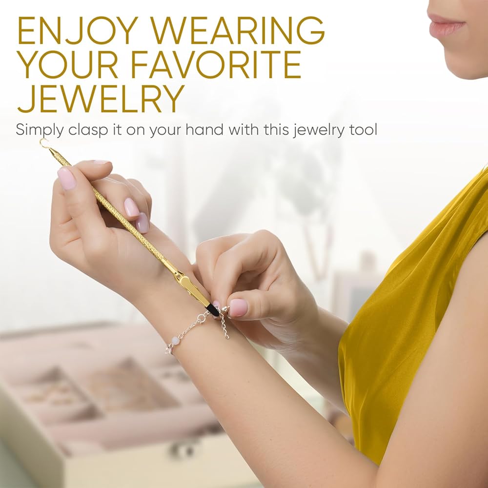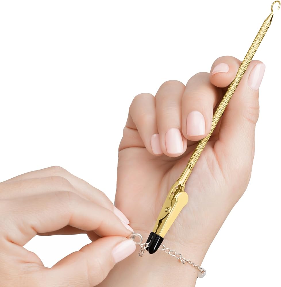 Bracelet Helper Tool with Hook - Fastener Helper Tool for Bracelet, Necklace, Jewelry, Watch - Clip, Clasp Helper - Portable, Easy-to-Use, Made of Metal - Gold