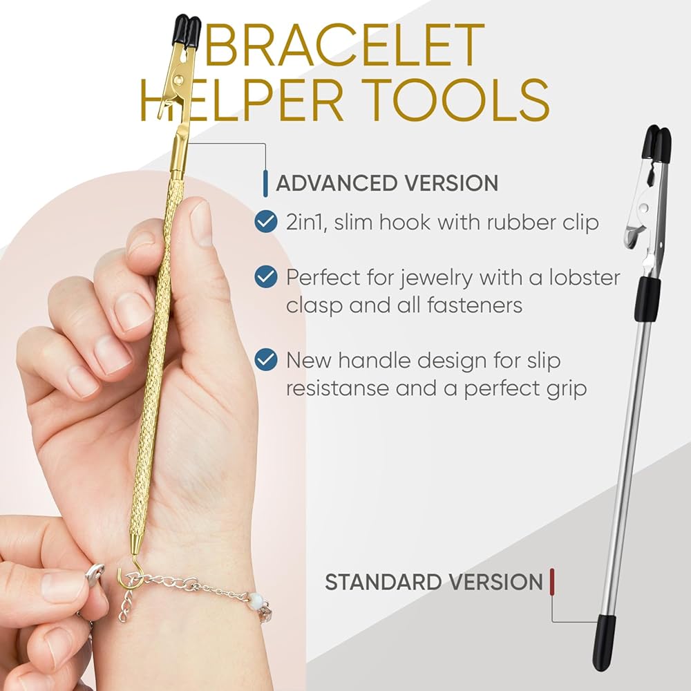 • 𝗩𝗲𝗿𝘀𝗮𝘁𝗶𝗹𝗶𝘁𝘆: The gorgeous bracelet helper is a multifunctional piece; jewelry clasp helper works for bracelets, necklaces, watches, zippers, and other jewelry; bracelet helper tool to put on yourself will become a key assistant in your daily life