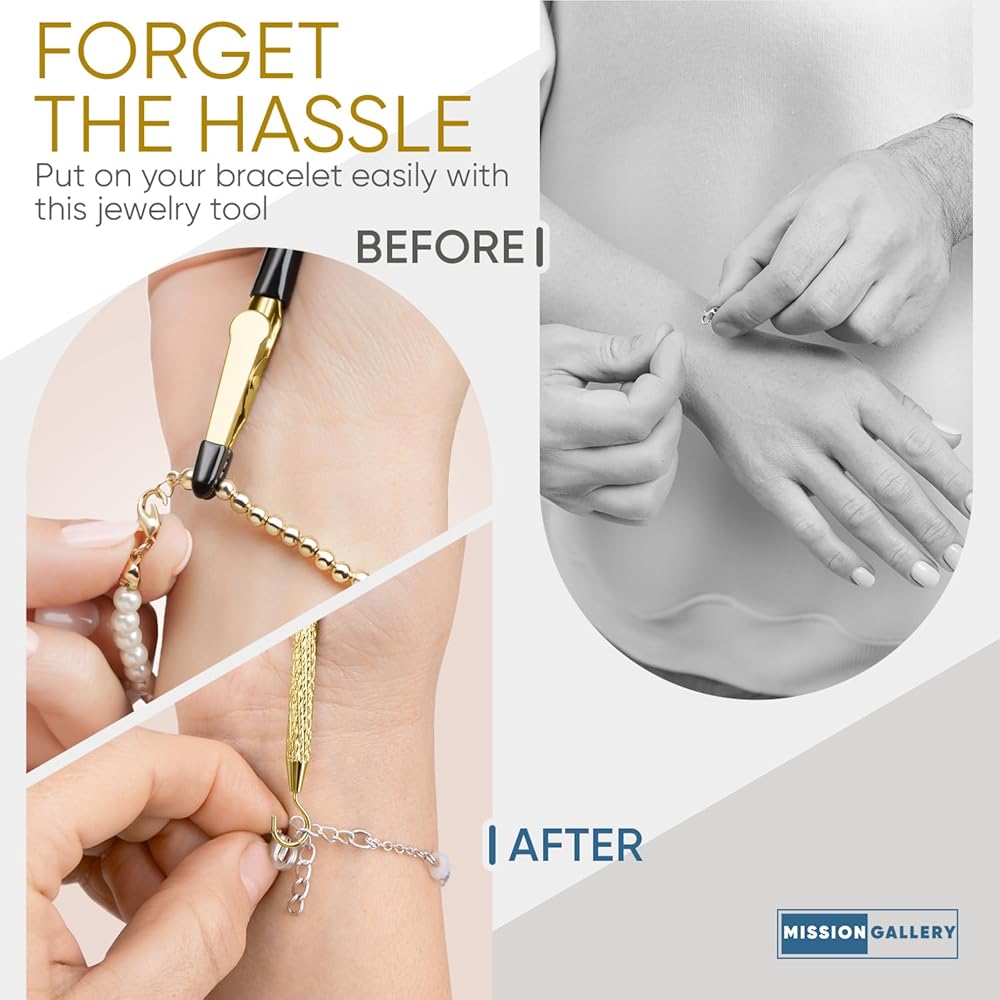 • 𝗨𝘀𝗲𝗿 𝗙𝗿𝗶𝗲𝗻𝗱𝗹𝘆: The jewelry fastener helper is easy to use by yourself; it secures the clasp to easily wrap the bracelet around your wrist and then fastens it effortlessly; bracelet fastener helper tool created by woman for women