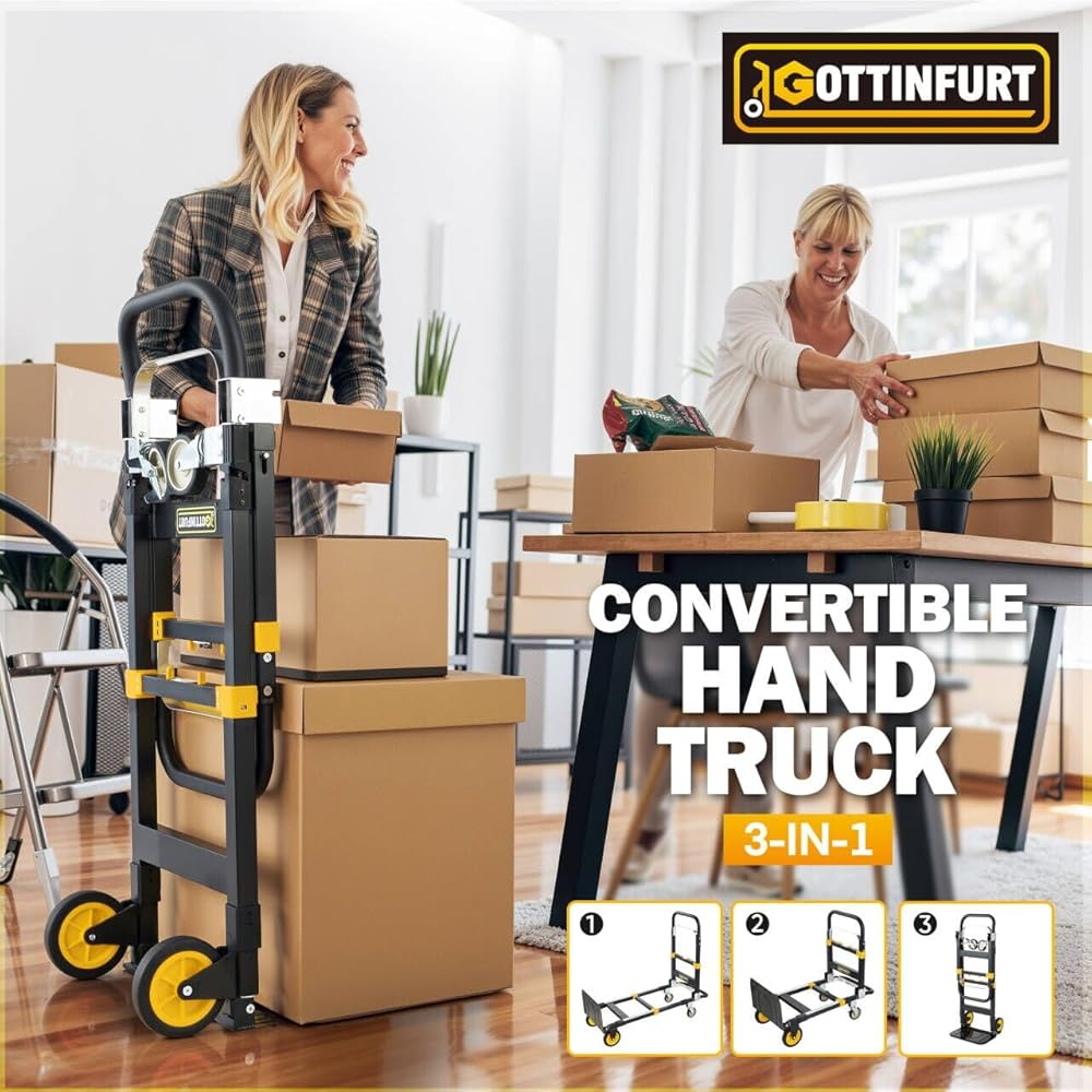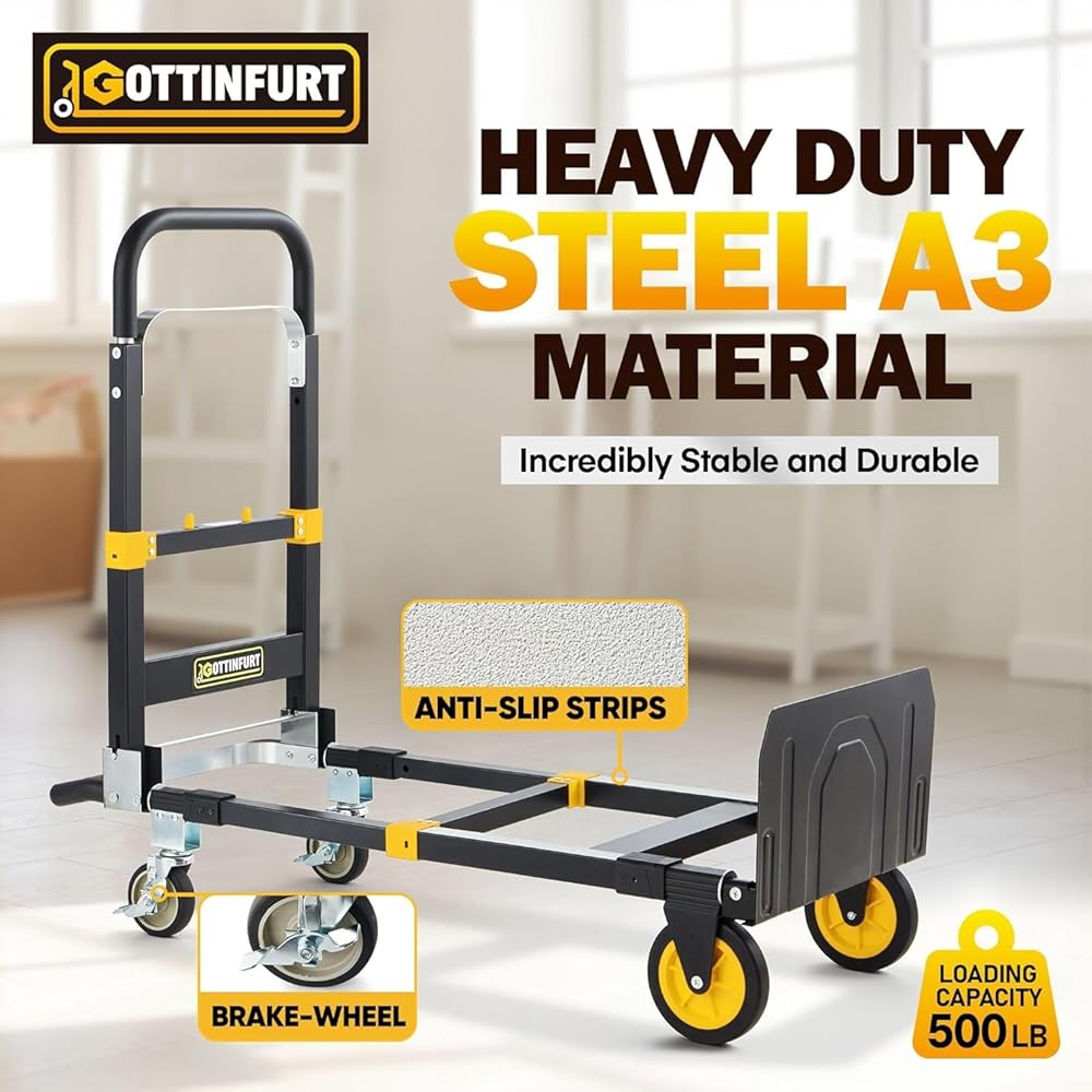 ⌛【Convertible Purpose】It can be quickly switched as a 2-Wheel Upright Hand Truck for 220 lb or a 4-Wheel Platform Cart for 500lb loading capacity without tools. That is great to own a regular dolly or heavy duty hand truck!