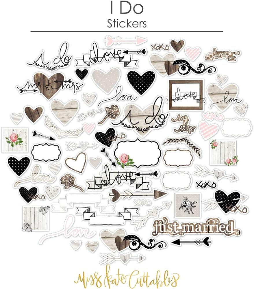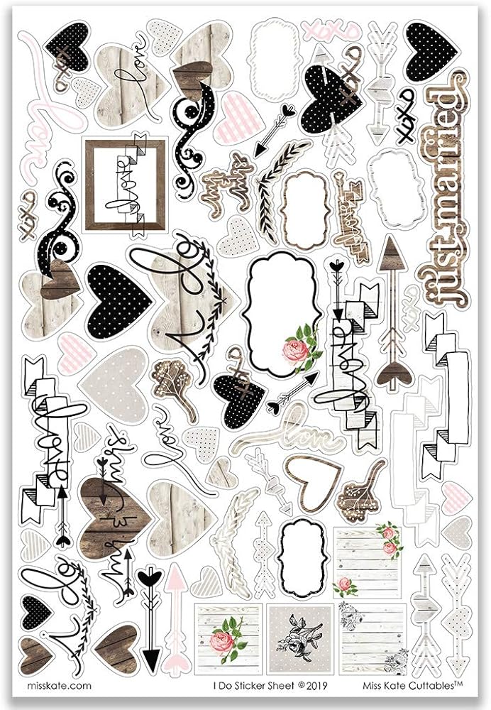 The I Do Stickers Sheet I Do, Love, Just Married, Mr & Mrs, Titles, Hearts Banners, Flowers with Vintage Shabby Elements