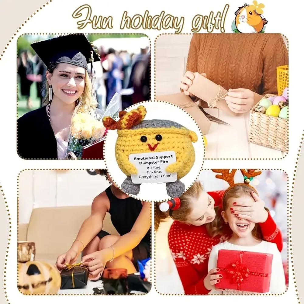 Emotional Support Dumpster Fire, Cute Funny Mini Handmade Doll with Encouragement Card, Handmade Crochet Dumpster Fire Doll Decorative Desk, Gifts for Friends(Yellow)