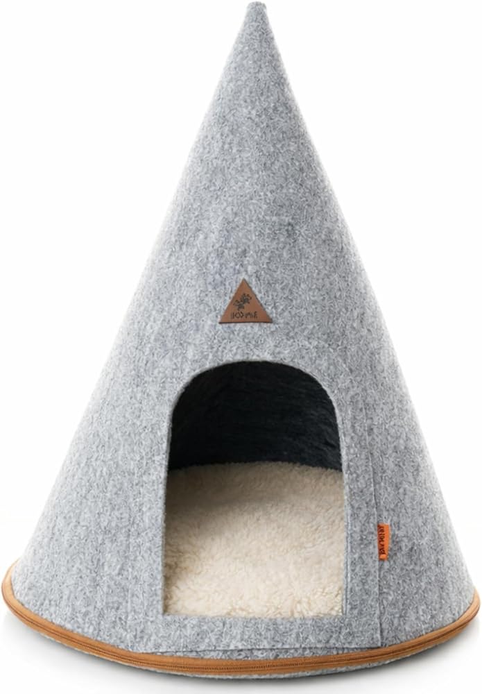 SAVUK Pet Tent Cat Dog House Felt Cave Bed with Cushion&Bag Decorative Foldable Igloo Hut Teepee Small and Medium Suitable for Travel Warm in Winter Cool in Summer 16"x16"18" Grey (Gray, Small)
