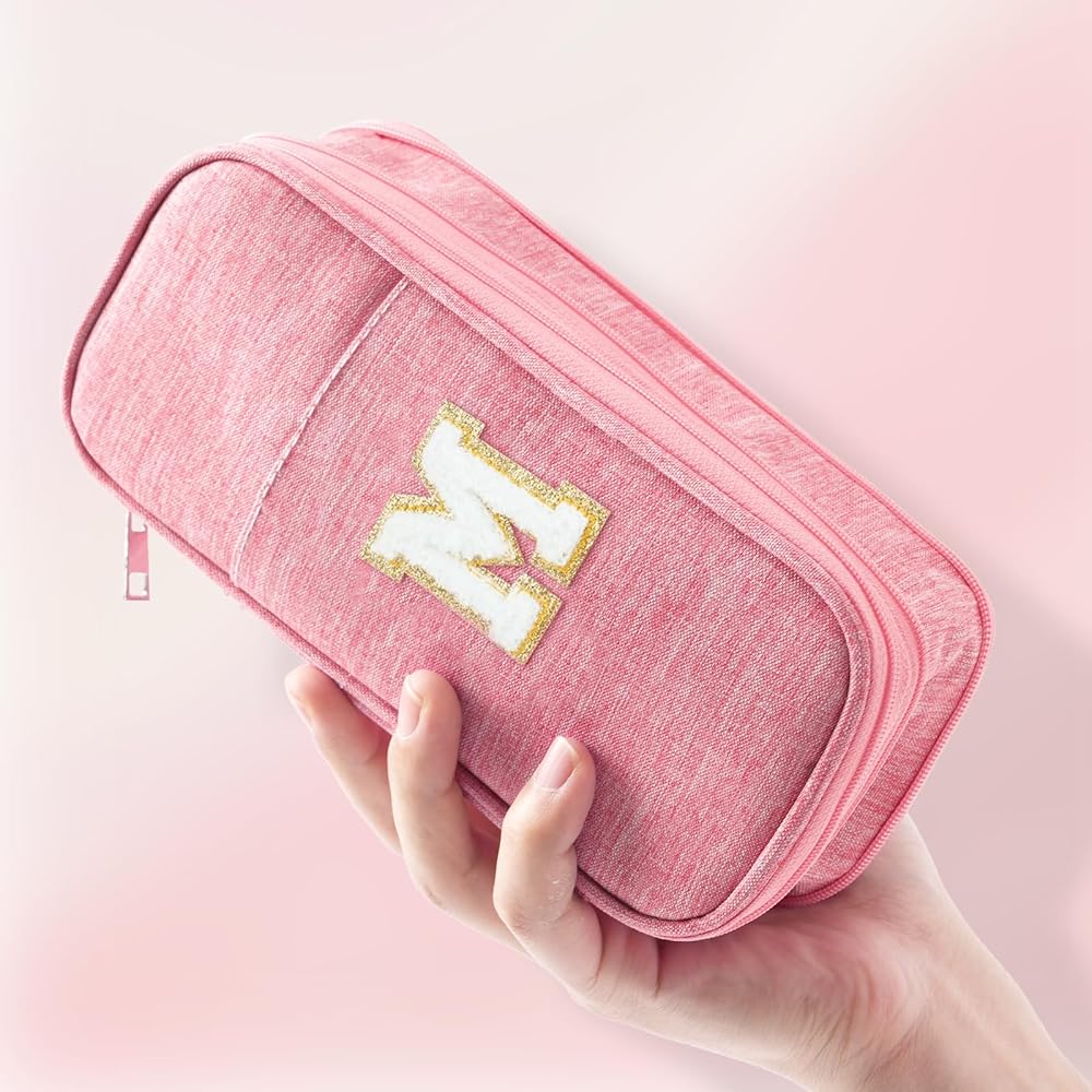 CUSTOMIZABLE AND CREATIVE DESIGN: This pencil case is thoughtfully designed with stitched letters, allowing you to personalize it with your initials, a special message, or any meaningful characters that reflect your unique style. Whether it's for yourself or as a gift, this customizable touch adds a personal and creative flair, making it stand out from regular pencil cases.