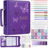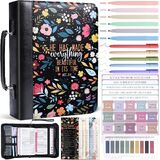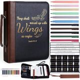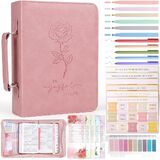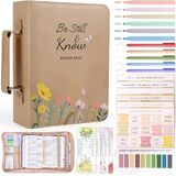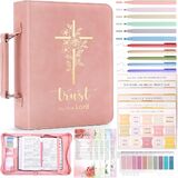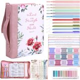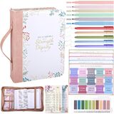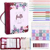 Organized study essentials: Includes 6 highlighters, 5 pens, 6 Bible tabs , 200 index tabs, and 5 bookmarks. Enhanced handle and interior pen loops ensure easy carrying and Bible protection.