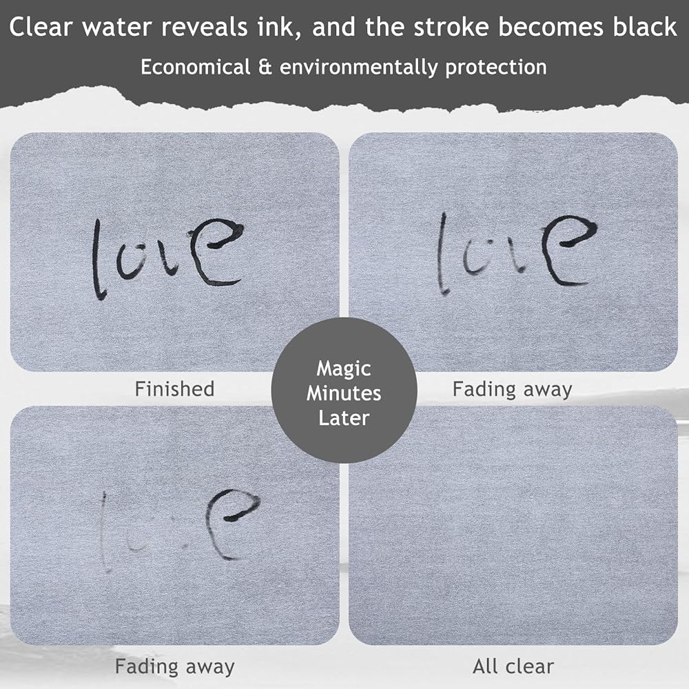 【No Ink Needed】These water paper only require a brush and water to write on, no ink is needed, just write or draw with water, after a few minutes the water will evaporate and the cloth will return to its original shape