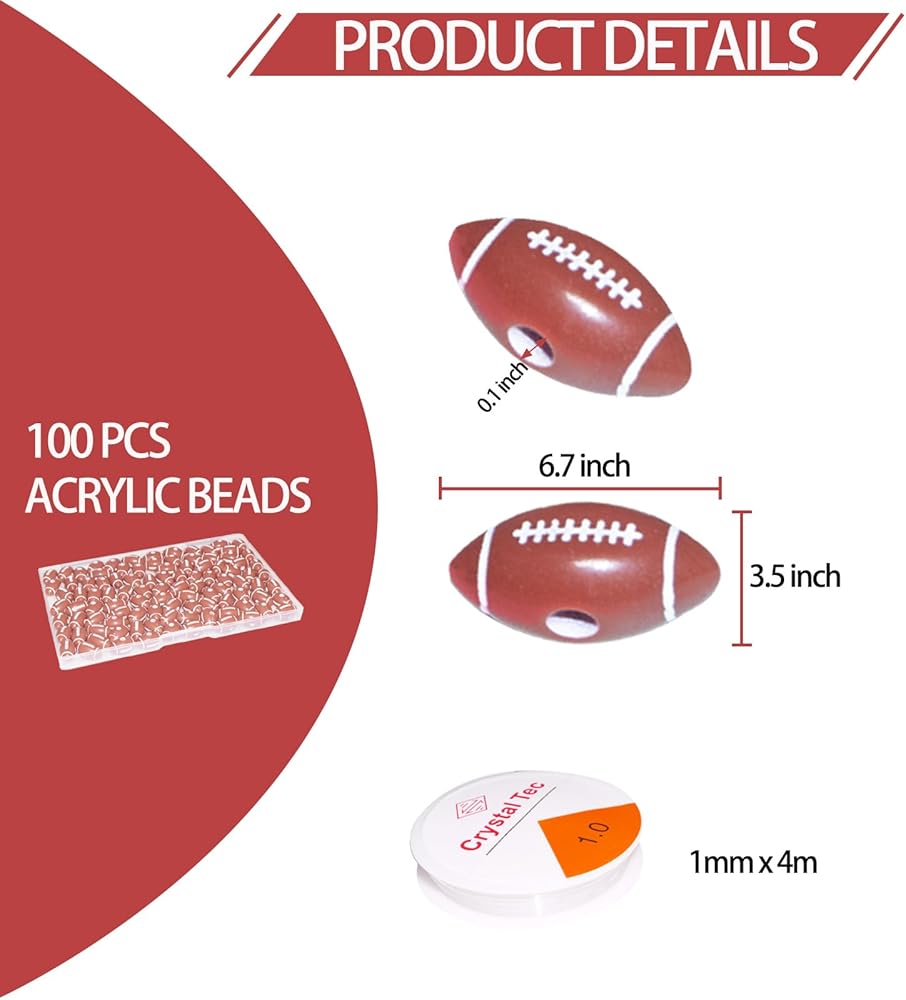 Package Included: 100 pcs soccer sports beads, 1 roll of 4 yard elastic bracelet strings, with 1 beads container