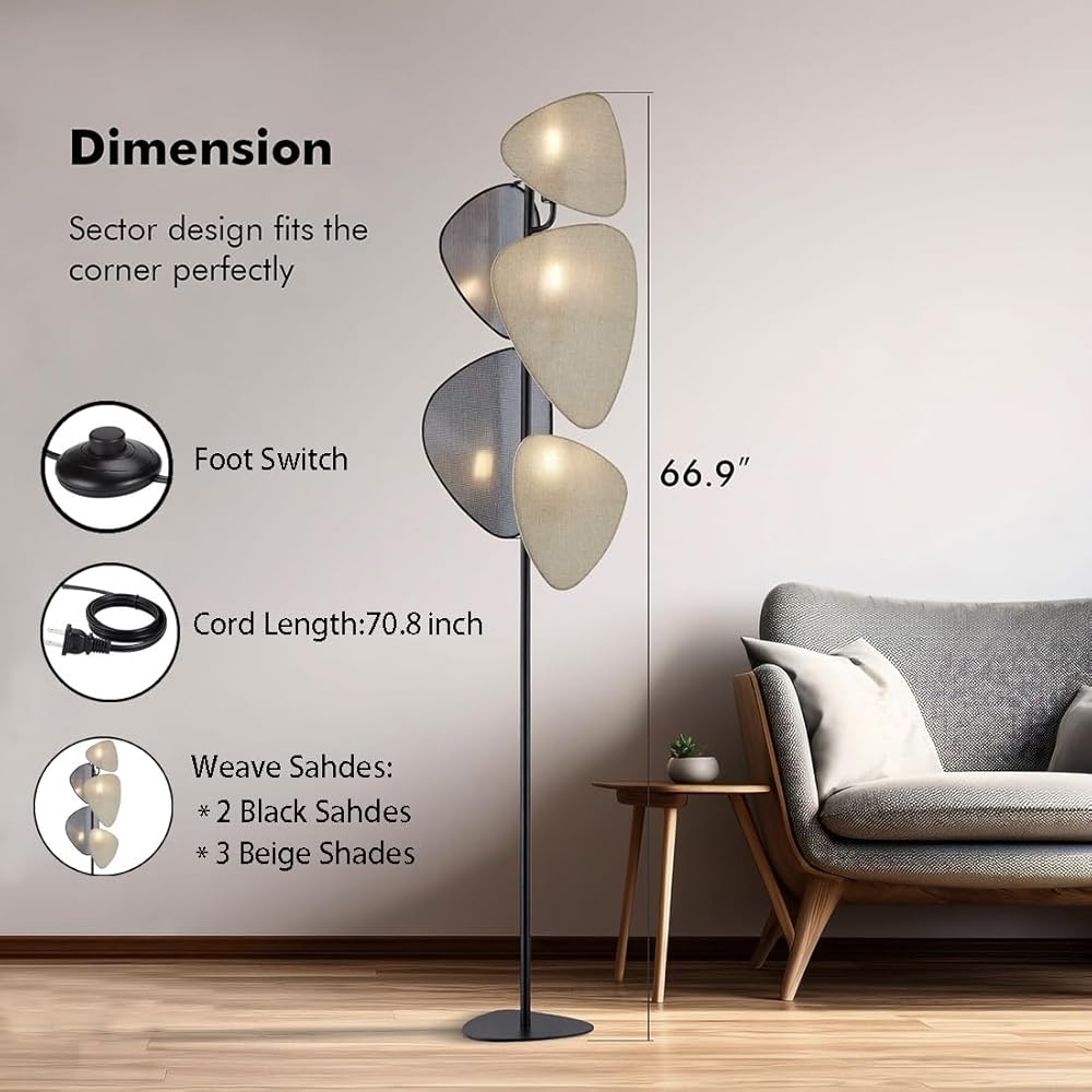 ✅【5 Beige Lampshades】: Our yellow standing Boho lamp features 5 beige ,the light that emits through the premium lampshades will be more comfortable and softer than direct light, effectively protecting your eyes.It is a great stand up lamp for home and office, the ideal gift choice for you.