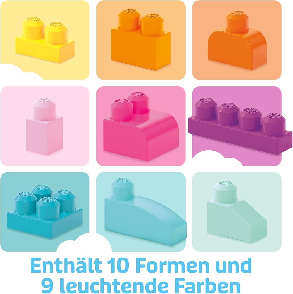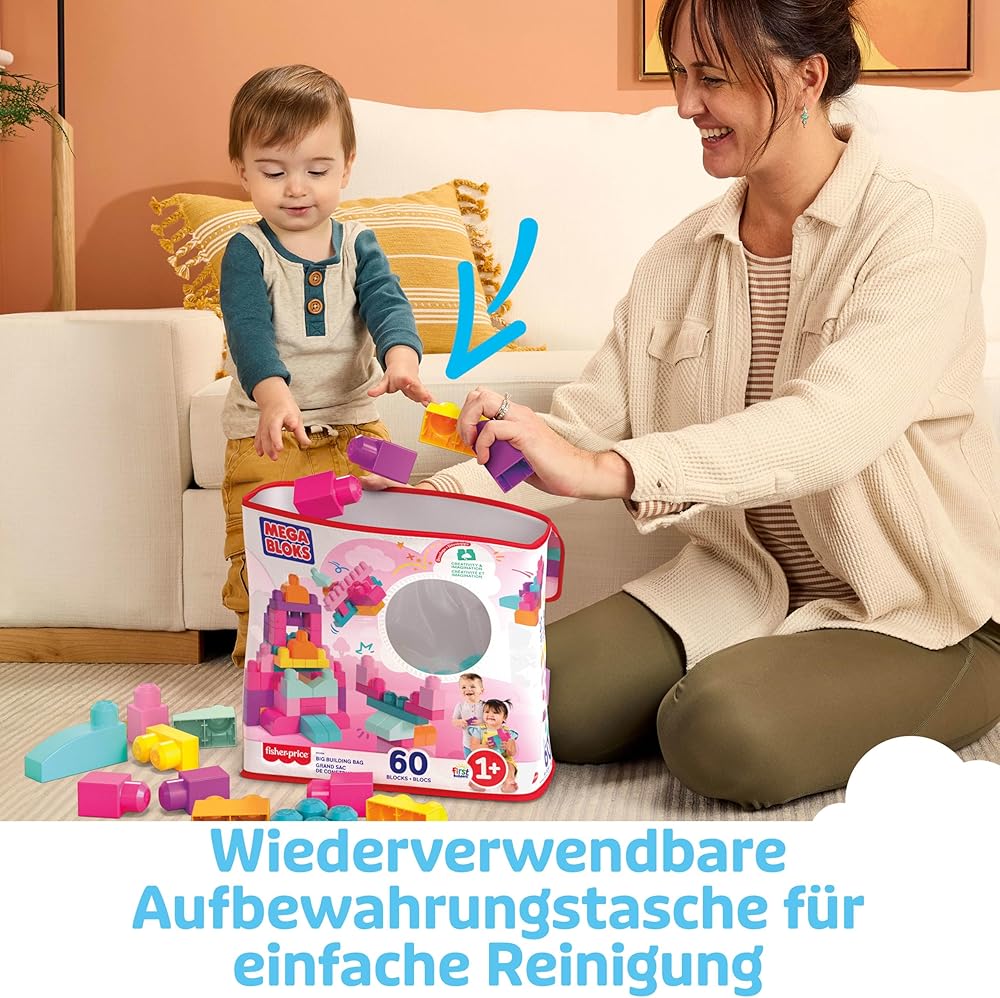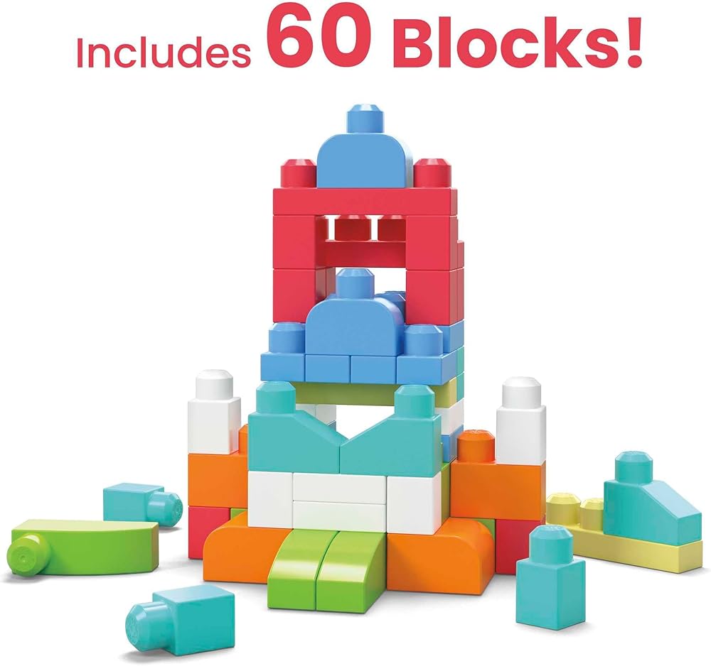 Endless creativity with 60 big, colorful building blocks! Build, stack, and explore endless construction possibilities with this award-winning set of 60 big building blocks in classic colors! Now your little one can build anything they imagine when they use the blocks and special shapes to create tall towers, crazy castles, funny animals, or whatever else they dream up! Perfect for little hands, these big blocks fit together and come apart easily, helping your child to develop fine motor skills and creativity over hours of open-ended play. When playtime's over, cleanup is easy with the handy storage bag Ideal for First Builders, ages 1+