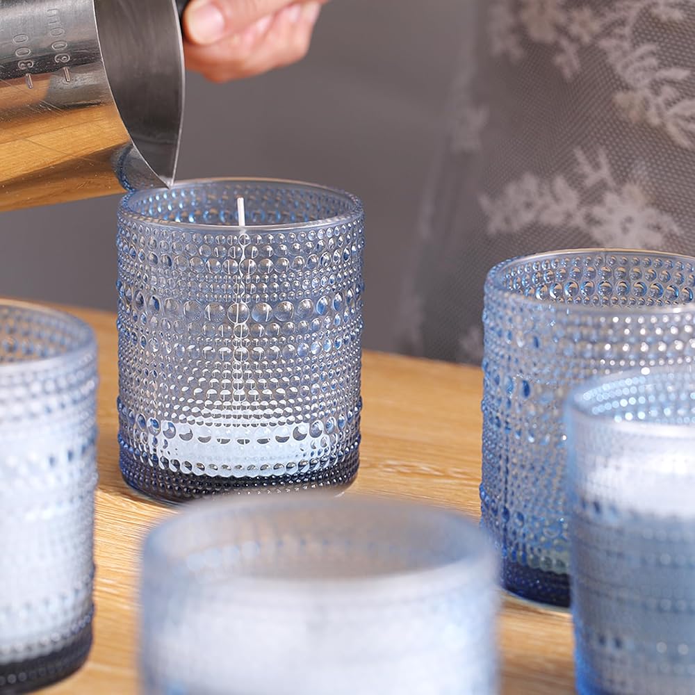 8 Pack Green Candle Jars for Making Candles: Elevate your candle-making game with our 8 oz and 14 oz blue glass candle jars. Each set includes 8 pcs with lids and bottom warning labels for convenient storage and safety. Ideal for crafting exquisite candles at home.