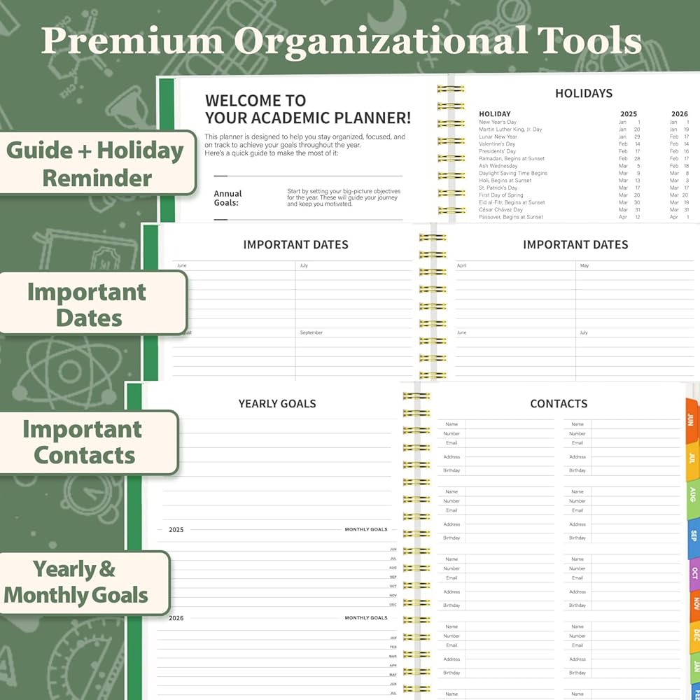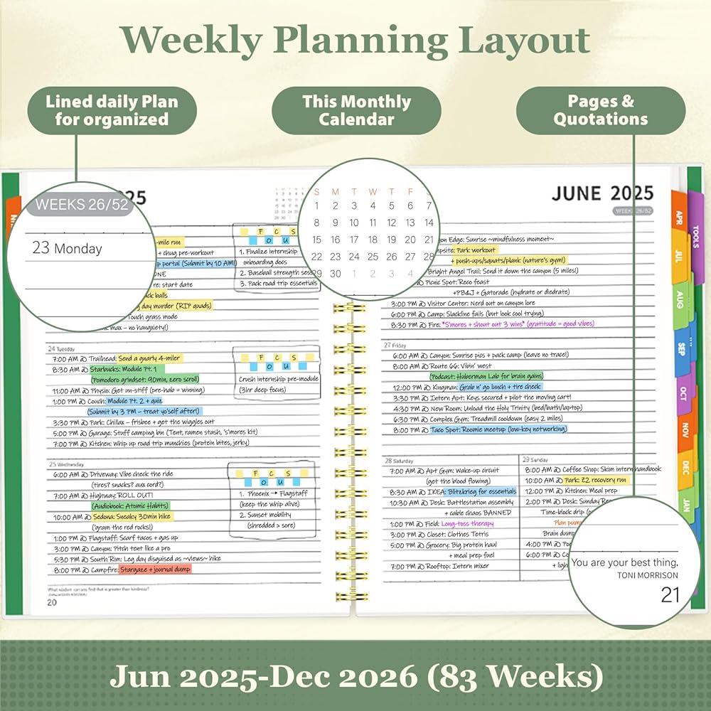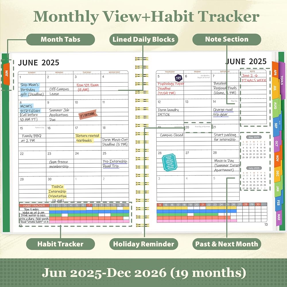 [19-Month Academic Planner: June 2025 - December 2026] - This Letter/A4 size planner features a comprehensive 19-month layout, ample weekly spreads, and effective habit trackers. Quickly organize academic classes, plan work assignments, or manage life goals – perfect for students and busy professionals.