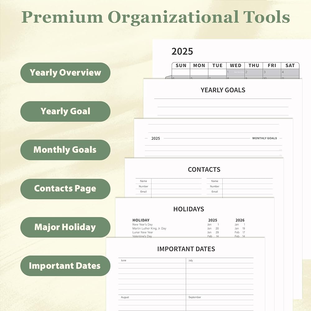 [Monthly Command Center w/ Habit Power: See More, Achieve More] Take instant track your every month! Our vibrant, laminated colorful tabs of the month give you one-glance visibility: track key habits daily (goodbye, forgotten resolutions!), spot US holidays instantly, capture big-picture goals, and seamlessly reference past/future months. Consolidate your tools – ditch the separate habit tracker and streamline your success.
