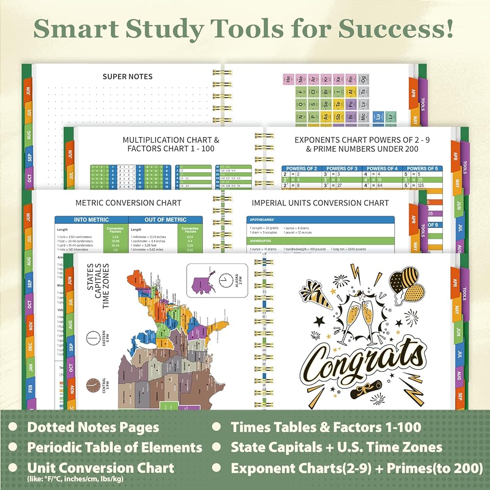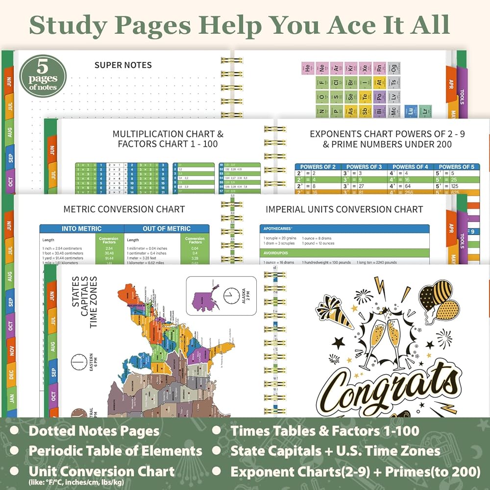[Useful Multifunction Pages You'll Use Daily] - Cheat sheets for school/work: Math tables, unit conversions, chemistry charts, state time zones, and even pre-written thank-you notes to celebrate your wins. Desk space? Worth it.