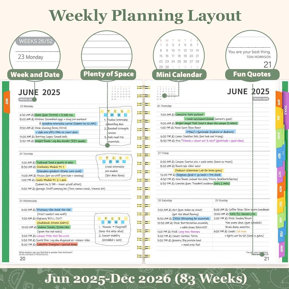 [Classic Weekly Layout: Got 83 weeks of ample writing space!] - Plan classes, work meetings, to-do lists, and your fun stuff without feeling cramped. Plus, little quotes make you smile and stay motivated while planning. It's simple and helps you chill.
