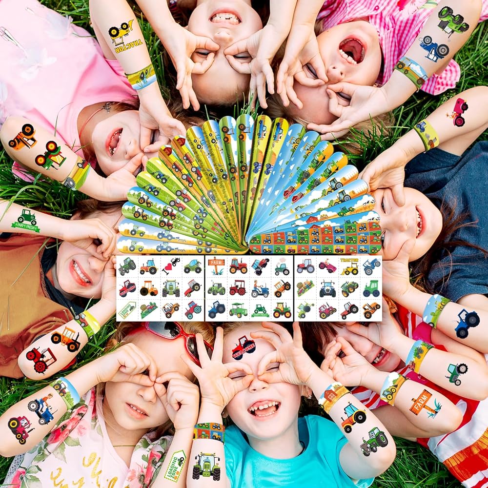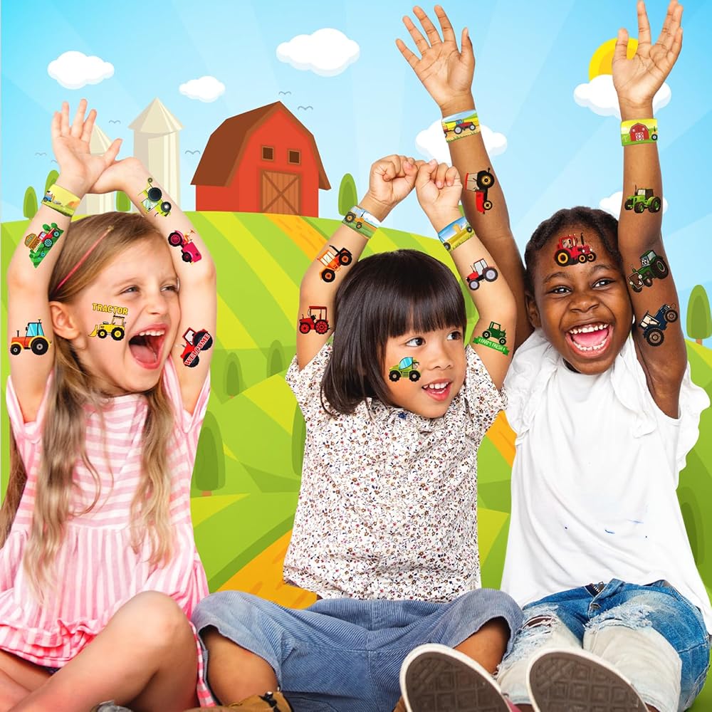 🚜 【TRACTOR PARTY FUN KIT】24 Slap Bracelets + 36 Tattoos! Kids trade “Tractor” & “Farm” bracelets like trading cards! Plus, exciting tractor tattoos for treasure hunts!