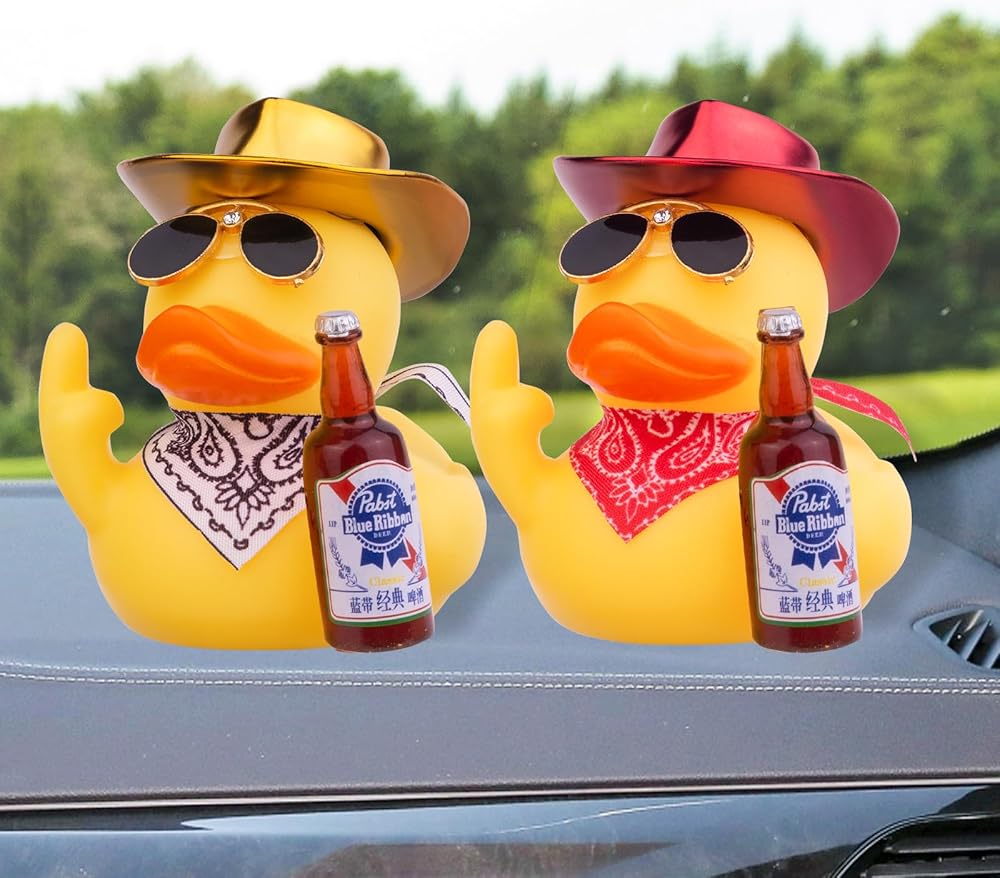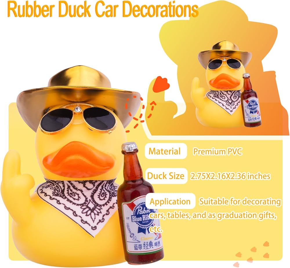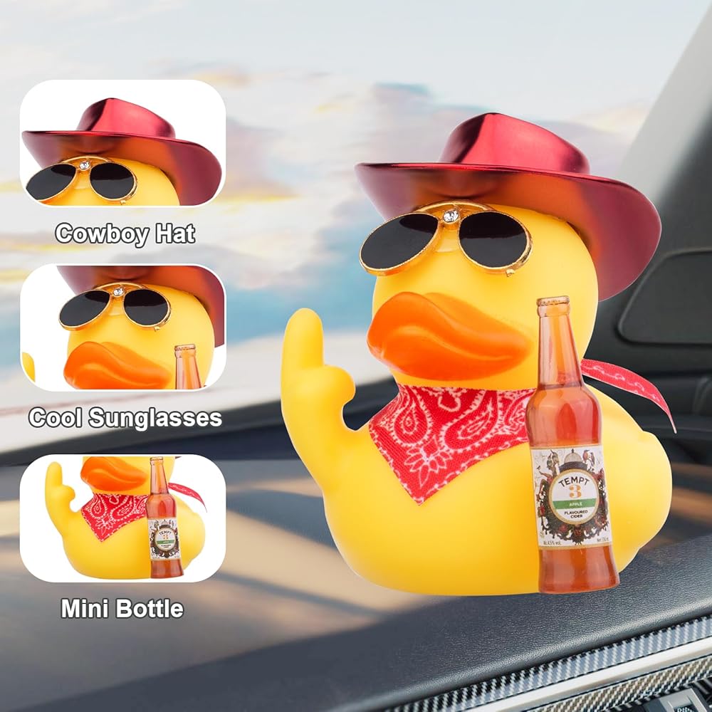 CoFuBcad Rubber Duck Car Dashboard Decorations Duck Car Ornaments with Mini Cowboy Hat Sunglasses Cute Prop for Car Accessories