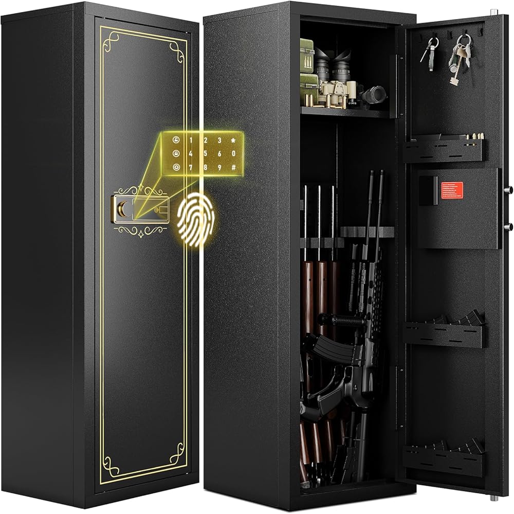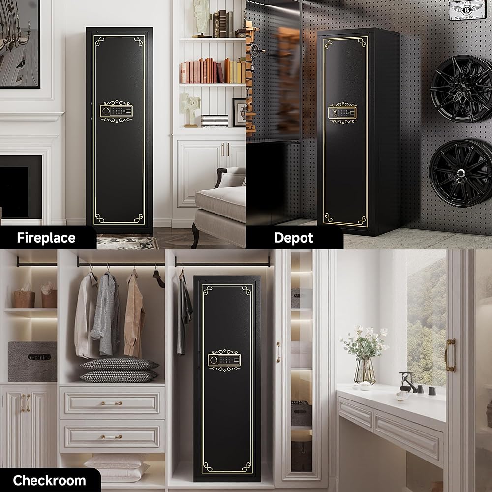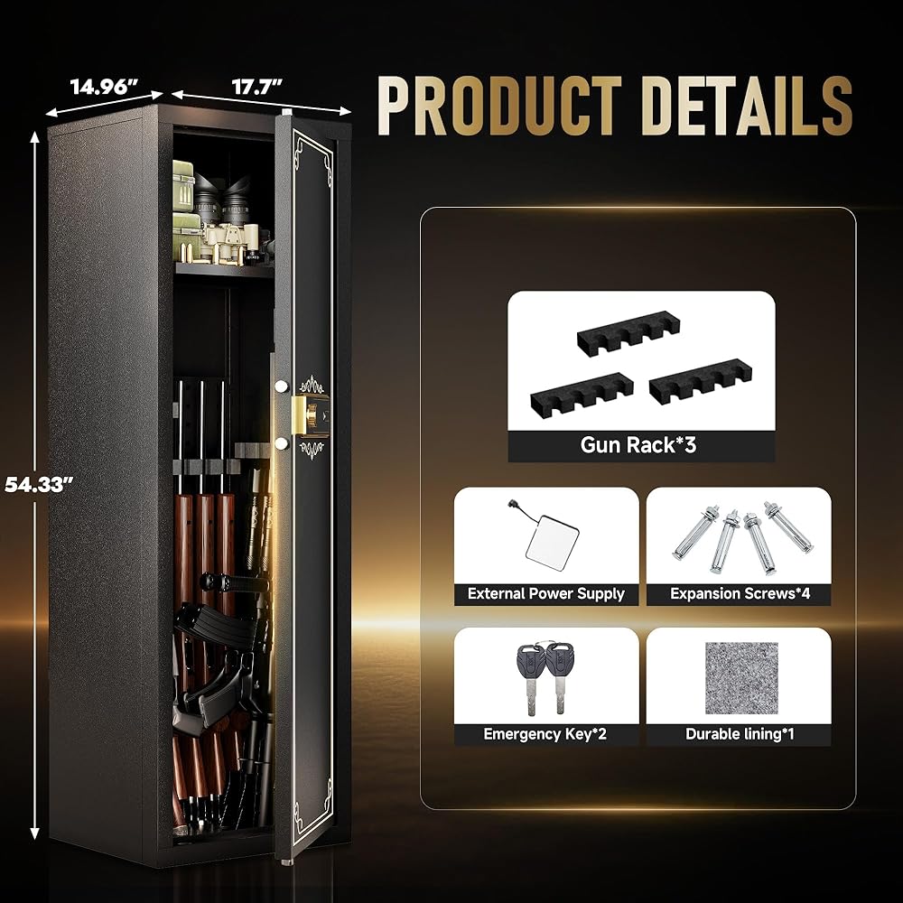 【Dual Unlocking with Fingerprint and Password Gun Cabinet】:Equipped with advanced fingerprint recognition and digital password dual locking system, fast response, secure and reliable, only authorized users can easily access, effectively preventing unauthorized access and safeguarding your firearm safety.