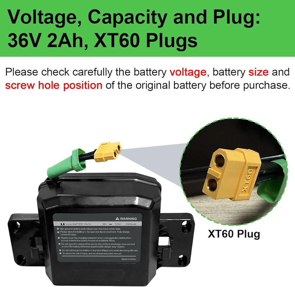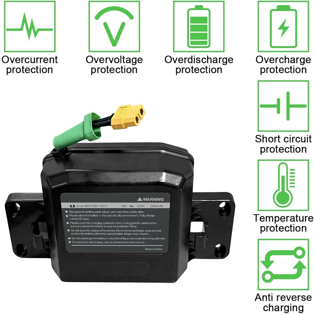 Multiple Protections:This 36 volts battery features six types of protection, including temperature, short circuit, overcharge, and overcurrent protection. These features ensure the battery remains stable and your device stays protected at all times.Please fully charge the battery before the first use, the battery will work better. Charge up to 1000 times without frequent battery changes.